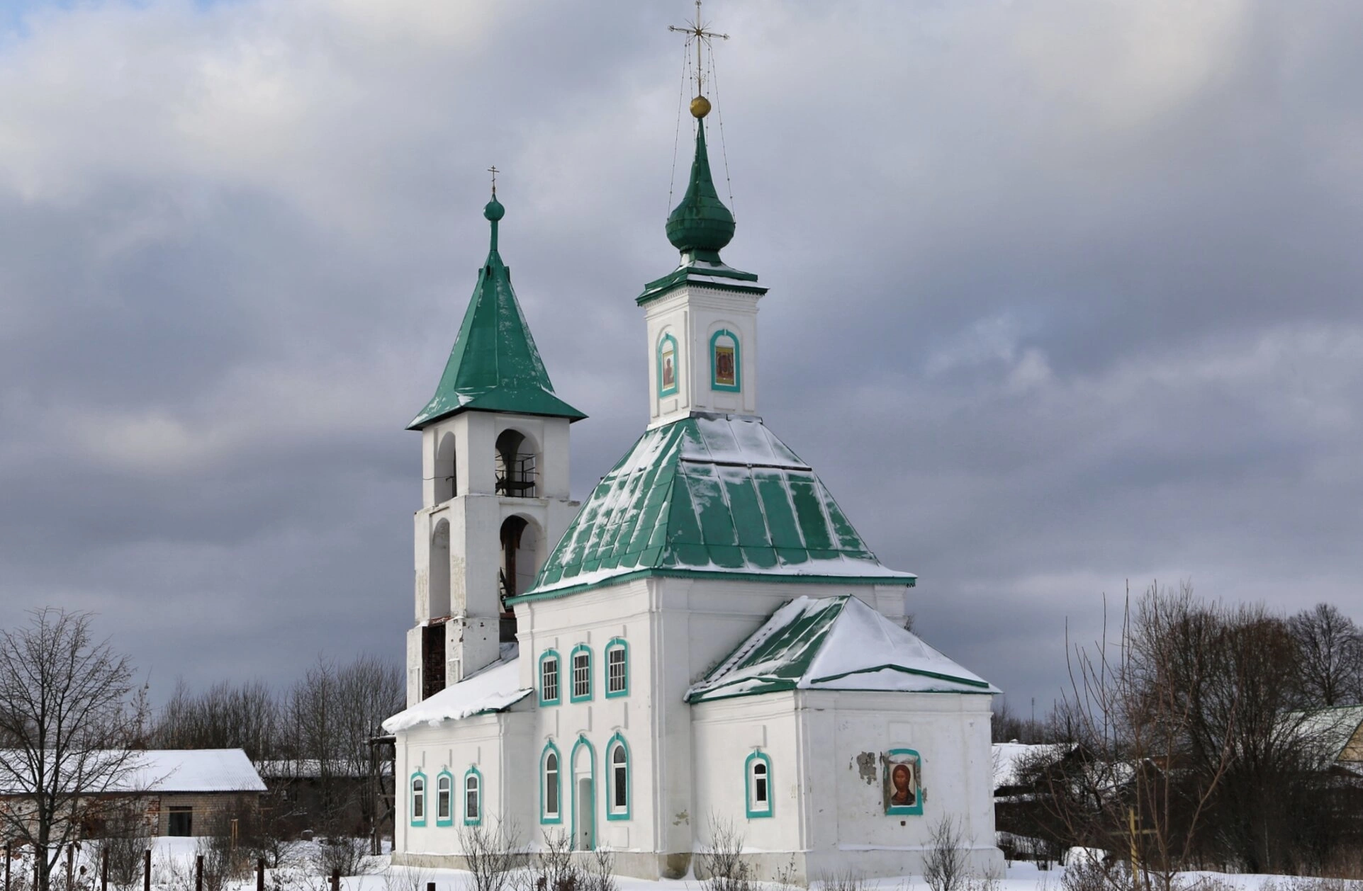 Колокольня, устремлённая в небесную высь, органично вписана в архитектурный ансамбль и является его неотъемлемой частью. В зимнее время, когда природа погружается в благоговейный покой, храм приобретает особое величие и становится зримым напоминанием о вечных ценностях православной веры. Окружённый заснеженными деревьями и скромными сельскими строениями, он являет собой духовный центр, объединяющий местных жителей в молитве и благочестии.