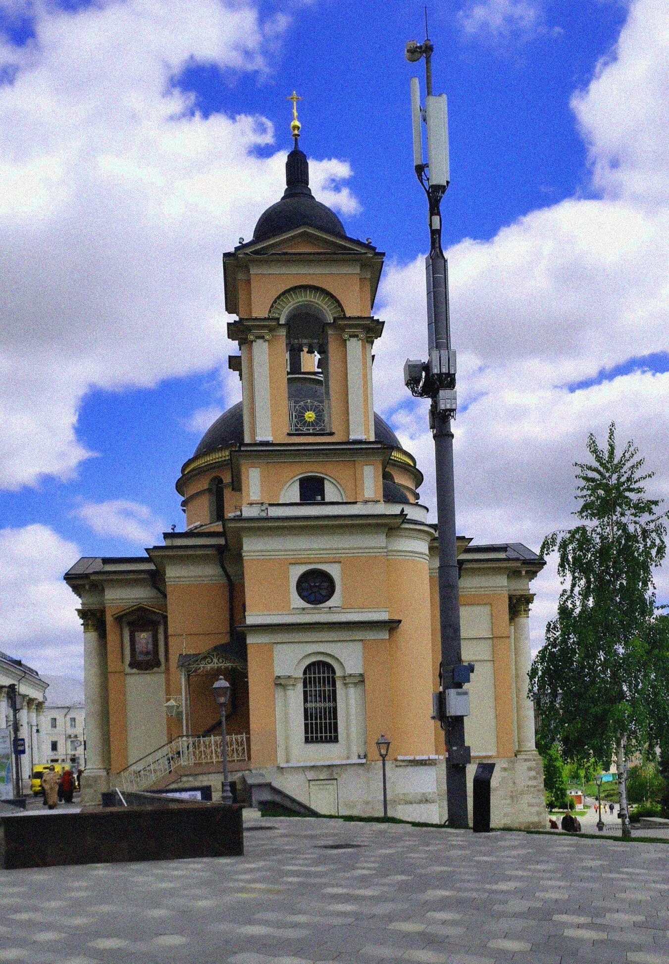 На фотографии запечатлён православный храм во имя святой великомученицы Варвары, расположенный в историческом центре Москвы, на улице Варварка. Эта церковь является одним из значимых духовных и архитектурных памятников столицы, находясь в непосредственной близости от стен Московского Кремля и древнего района Китай-город.