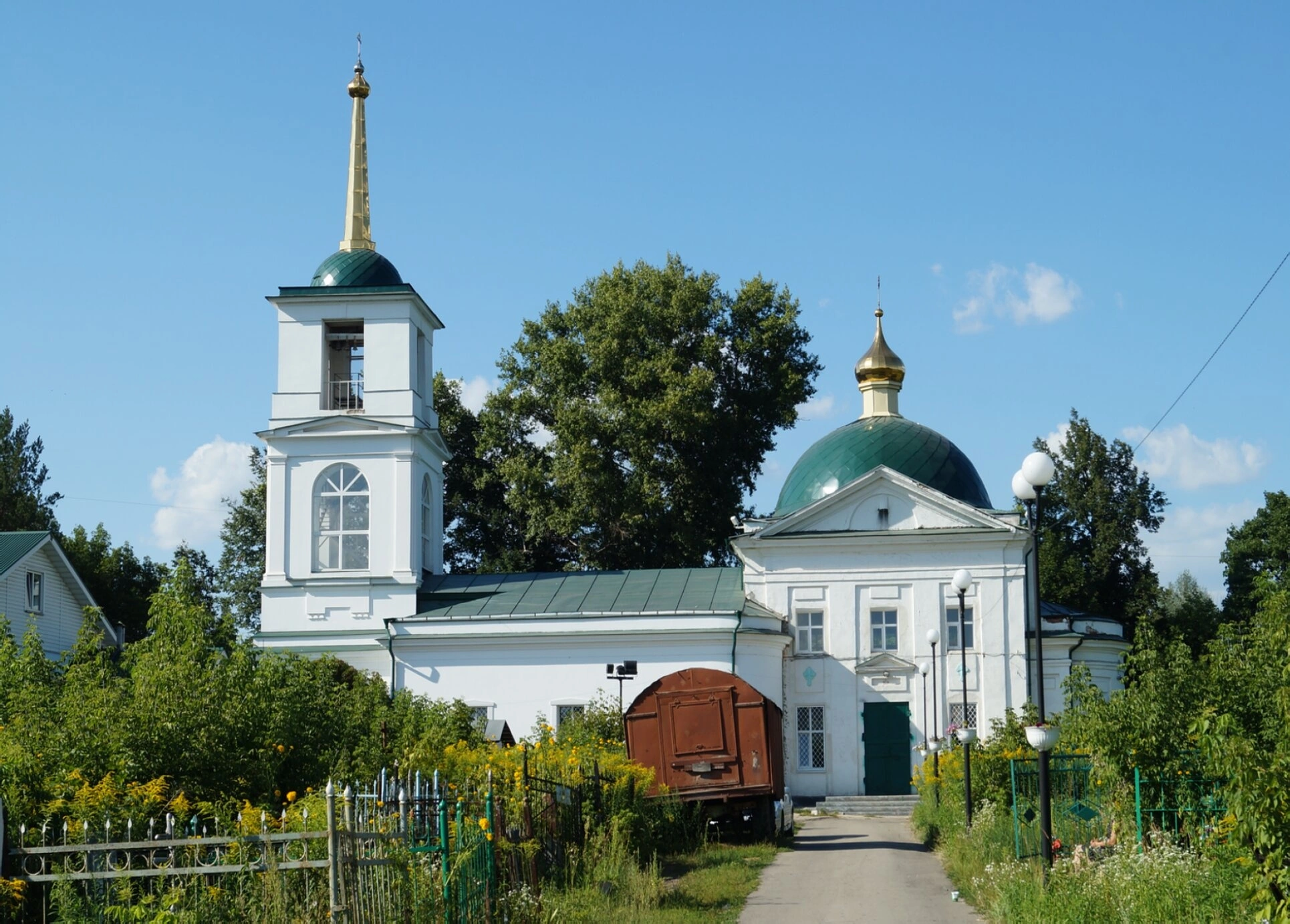 Святыня была освящена в 1801 году и представляет собой ценный образец храмовой архитектуры периода раннего классицизма. Архитектурный облик здания отличается строгостью и благородством форм. Белоснежные стены храма украшены изящными фальш-колоннами и аккуратными узкими оконными проемами, завершающимися классическими карнизами. Над основным объемом возвышаются ярко-зеленые купола, создающие прекрасный цветовой контраст со светлыми фасадами.