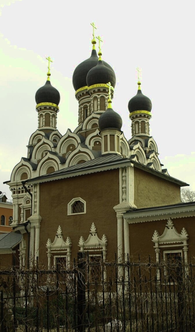 На представленной фотографии запечатлён старинный московский храм во имя святого великомученика Георгия Победоносца, что расположен в местности Ендова на Садовом кольце. Это один из выдающихся памятников русского церковного зодчества середины XVII века, освящённый в честь небесного покровителя воинства.