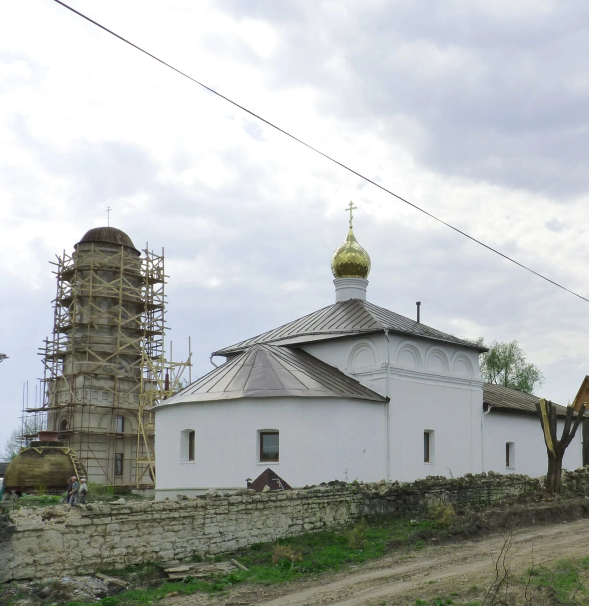 На представленной фотографии запечатлен храм в честь святого великомученика Георгия Победоносца, расположенный в селе Гремячево Перемышльского района Калужской области. Святыня находится на территории возрождаемого Свято-Успенского Лихвинского женского монастыря, что придает ей особое духовное значение.