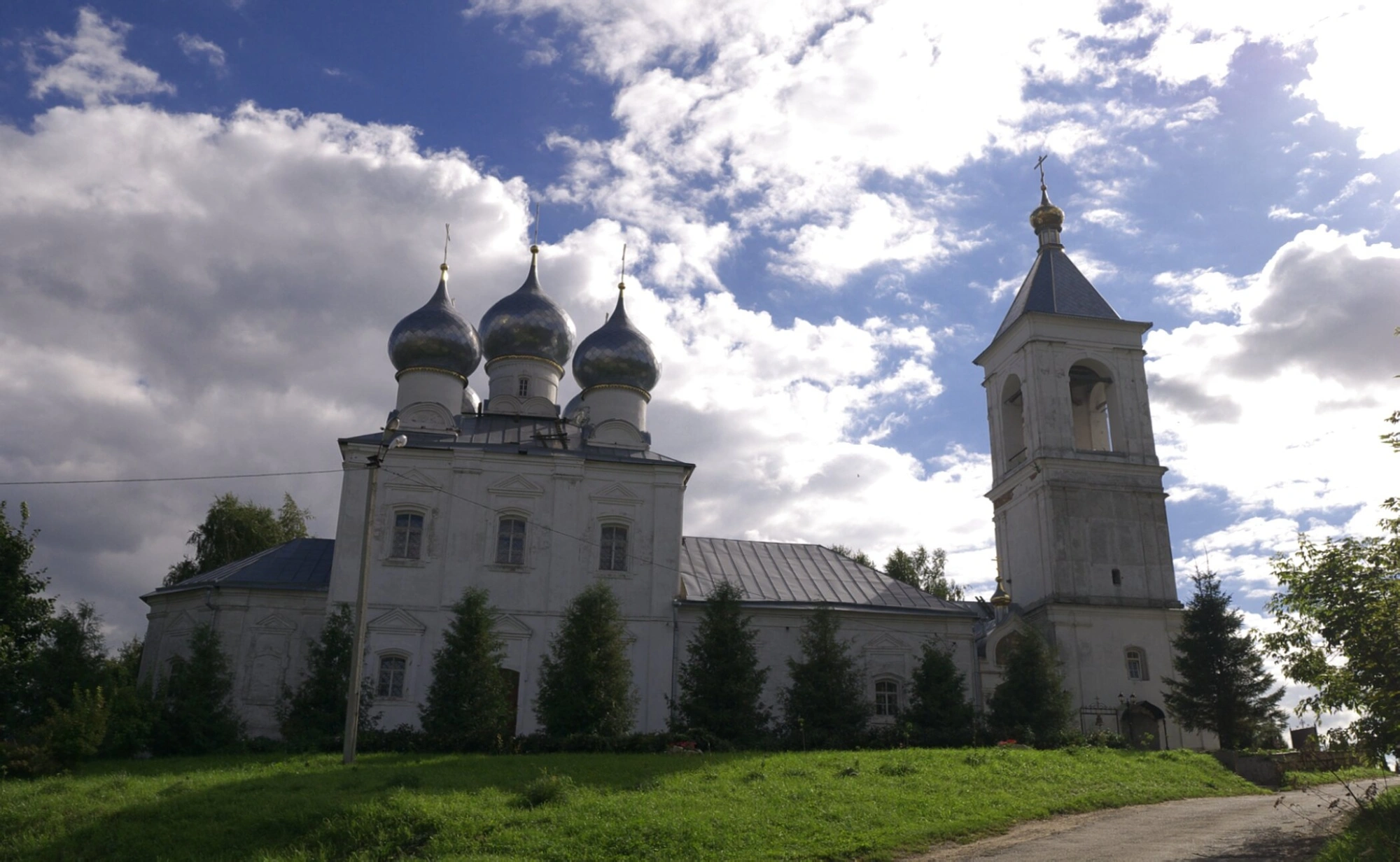 Святыня освящена в честь святого великомученика Никиты, пострадавшего за веру во Христа в IV веке. Белоснежные стены храма и лазурные купола, увенчанные золочёными крестами, создают яркий и праздничный образ, гармонично вписывающийся в окружающий сельский пейзаж. Над входом возвышается стройная шатровая колокольня, являющаяся композиционной доминантой всего сооружения.
