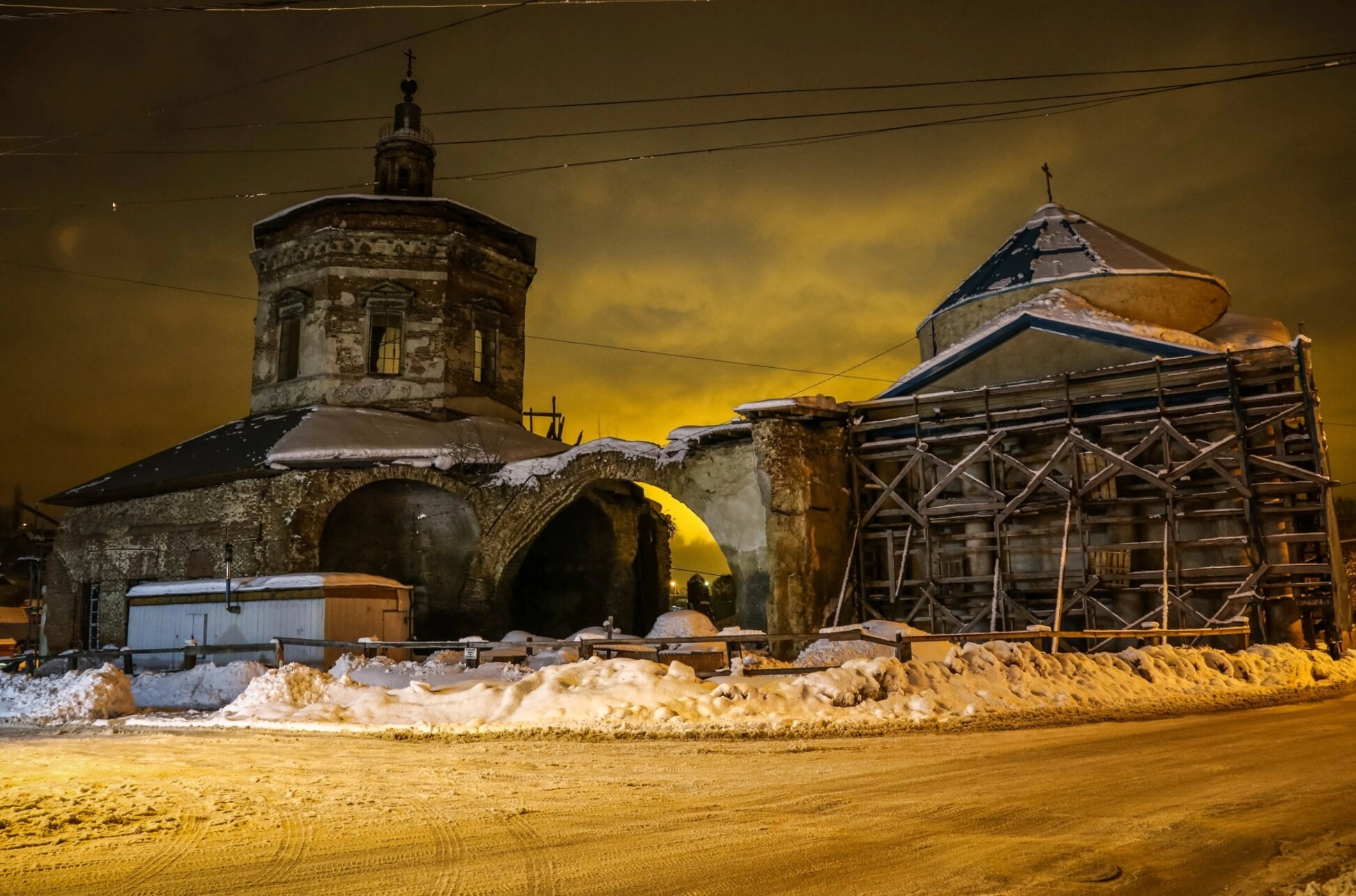 - Храм Владимирской иконы Божией Матери в Ельце зимней ночью