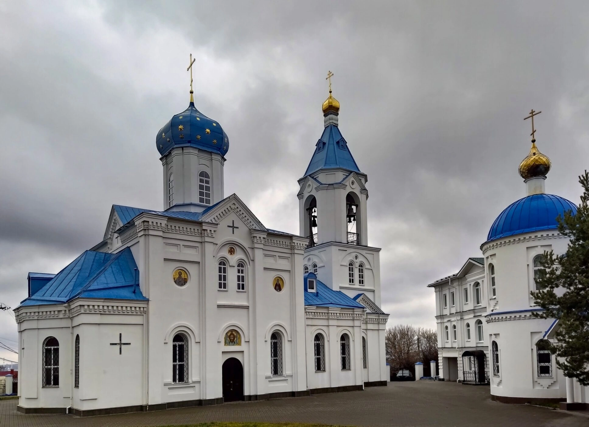 Архитектура собора выдержана в лучших традициях русского церковного зодчества, с характерными арочными окнами и декоративными элементами, подчёркивающими устремлённость всего строения к небесам. Несмотря на пасмурную погоду, запечатлённую на снимке, храм выглядит светло и величественно, олицетворяя собой незыблемость православной веры.