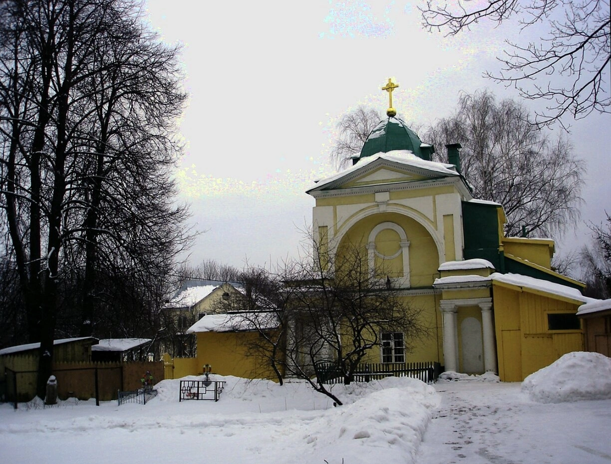 Снимок передаёт благоговейную тишину зимнего дня. Деревья с обнажёнными ветвями, снежные сугробы и протоптанная тропинка к храму подчёркивают уединённость и мирный характер этого святого места. Церковь неразрывно связана с историей усадьбы, которой в разное время владели известные дворянские фамилии — Глебовы, Бенкендорфы, Долгоруковы. В советские годы храм был закрыт, но избежал полного разрушения, а в 1990-е годы возвращён Русской Православной Церкви и вновь освящён.