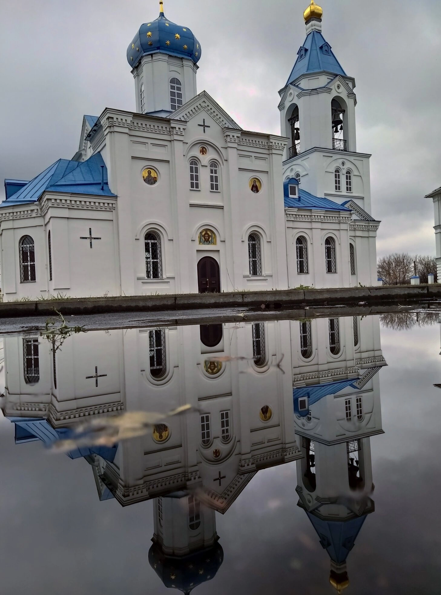 Особую художественную ценность и богословскую глубину снимку придаёт зеркальное отражение храма в водной глади, что создаёт удивительно симметричную и гармоничную композицию. Этот образ напоминает верующим о двоящемся образе горнего и дольнего миров, о связи земной Церкви с её Небесным Прообразом. В спокойной воде, как в чистой душе, отражается красота Божьего дома, призывая к умиротворению и молитвенному созерцанию.