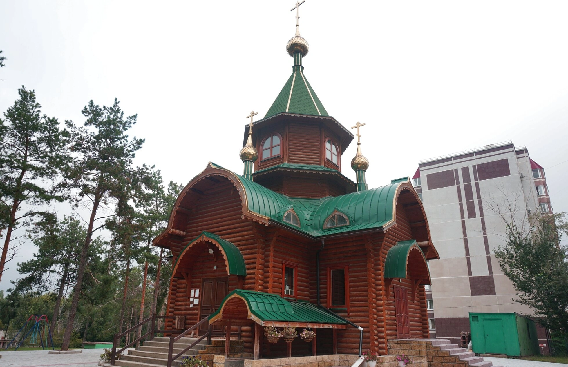 На представленной фотографии запечатлён храм во имя святой благоверной царственной великомученицы Тамары, расположенный в городе Тольятти. Этот деревянный православный храм является уникальным образцом современного церковного зодчества, выполненного в лучших традициях русского деревянного храмостроительства.