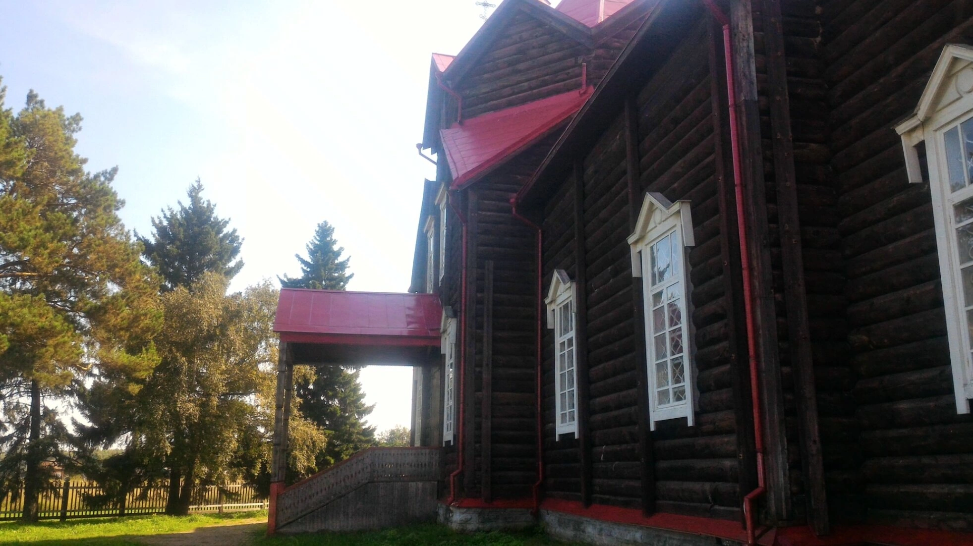 На представленной фотографии запечатлена Серафимовская церковь — величественный деревянный храм, расположенный в селе Турнаево Томской области. Этот уникальный памятник церковной архитектуры был возведён в начале XX века и освящён в честь преподобного Серафима Саровского, став первым таким храмом в Сибири и четвёртым в мире.