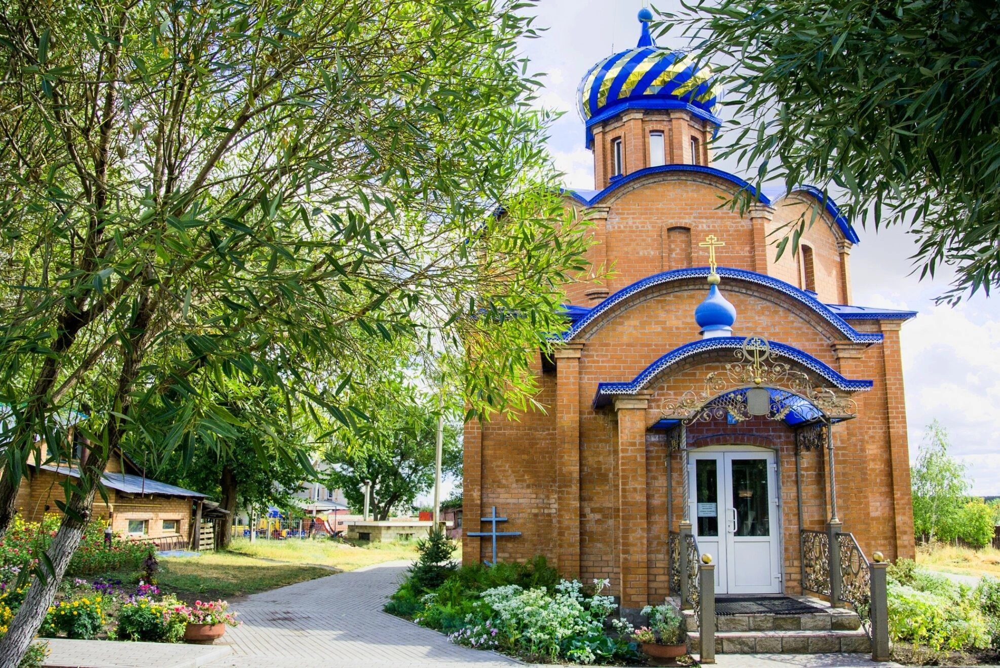 Главный объём храма венчают синие купола, увенчанные златоглавыми православными крестами, символизирующими победу над грехом и смертью. Фасад здания украшен ажурным козырьком над главным входом, который обрамлён белыми двустворчатыми дверями, приглашающими верующих внутрь для молитвы. В оформлении чётко прослеживаются традиционные элементы русского церковного зодчества.