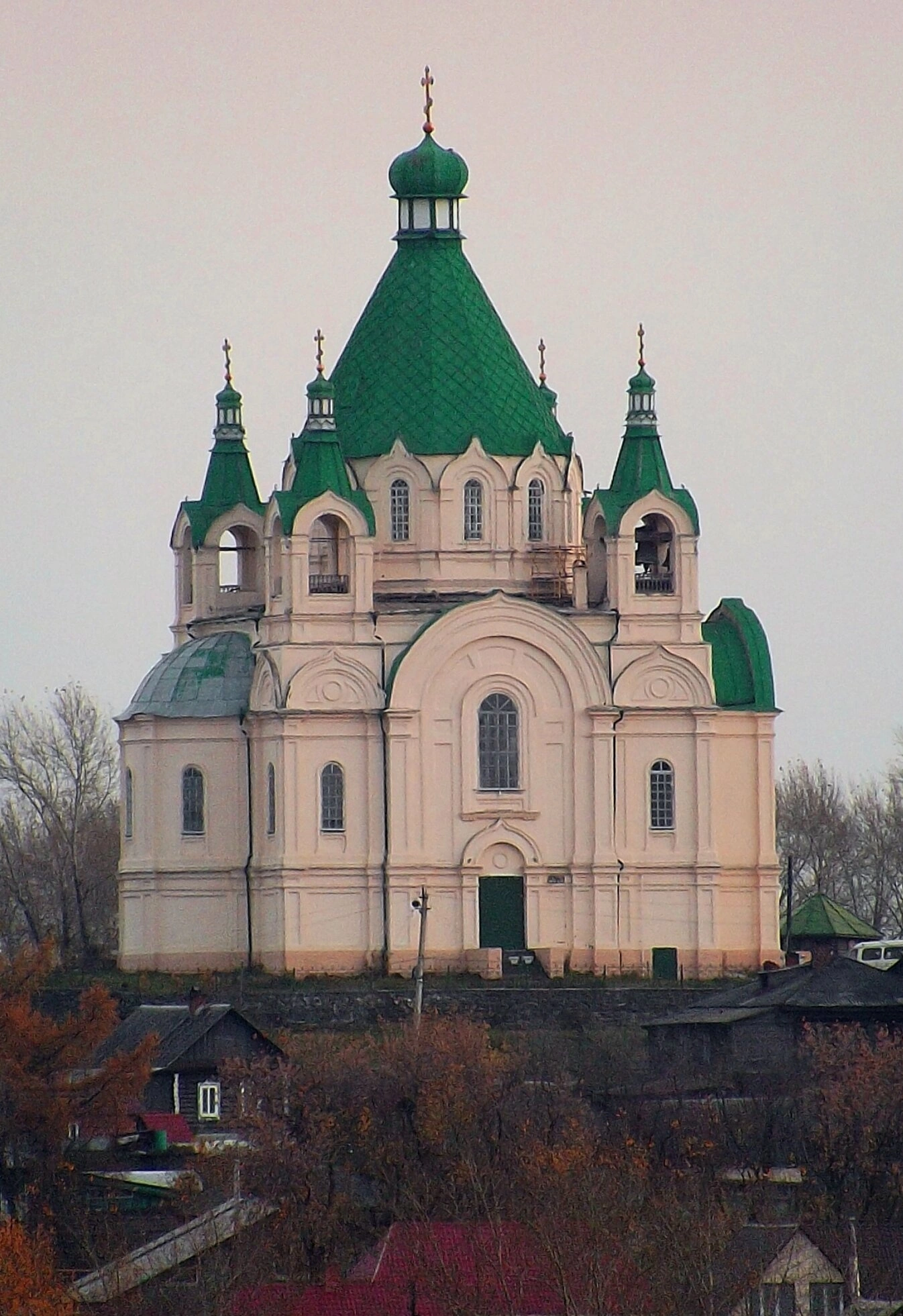 На представленной фотографии запечатлён величественный храм во имя святого благоверного князя Александра Невского, расположенный в исторической части города Нижний Тагил на улице Совхозной. Свято-Александро-Невский храм, возведённый в 1862–1877 годах на добровольные пожертвования горожан, является выдающимся памятником русской церковной архитектуры второй половины XIX века и объектом культурного наследия регионального значения.