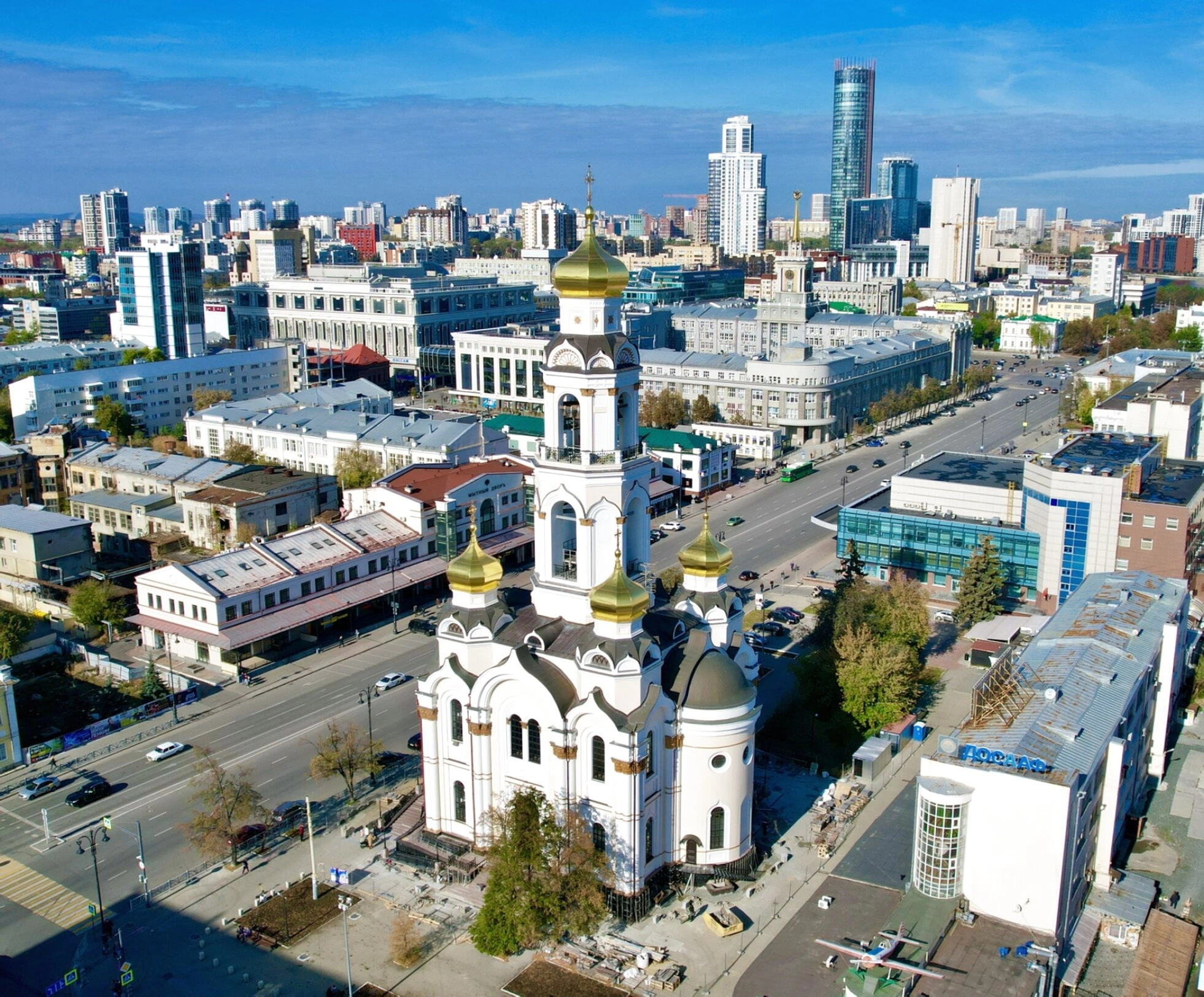 На представленной фотографии запечатлён величественный воссозданный храм во имя святого мученика Максимилиана Эфесского, более известный среди горожан и паломников как Большой Златоуст. Это один из самых узнаваемых и значимых православных символов столицы Урала, возвышающийся в самом сердце Екатеринбурга.
