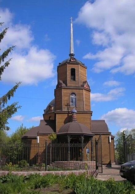 На представленной фотографии запечатлён уникальный памятник православного зодчества — храм во имя святого праведного Симеона Верхотурского в городе Уфе. Этот деревянный храм, являющийся объектом культурного наследия, расположен в живописном месте по адресу: улица Белякова, дом 25А.