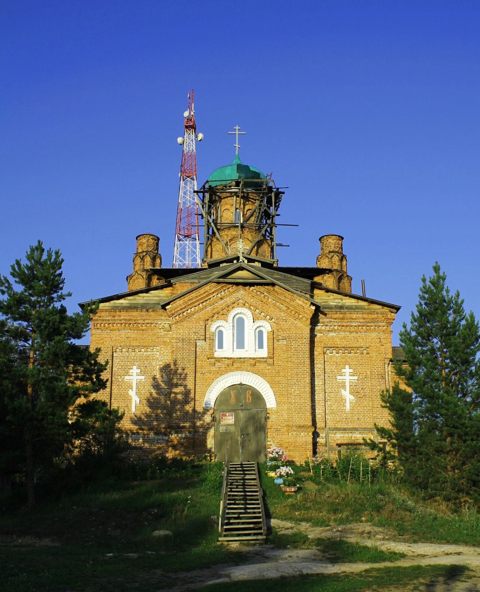 Храм расположен на живописном возвышении, что подчёркивает его особый статус в окружающем пространстве. К главному входу ведёт деревянная лестница, приглашая верующих на молитву. Окружают церковь стройные хвойные деревья, в основном сосны, которые создают естественное обрамление и гармонично вписывают творение рук человеческих в уральский пейзаж.