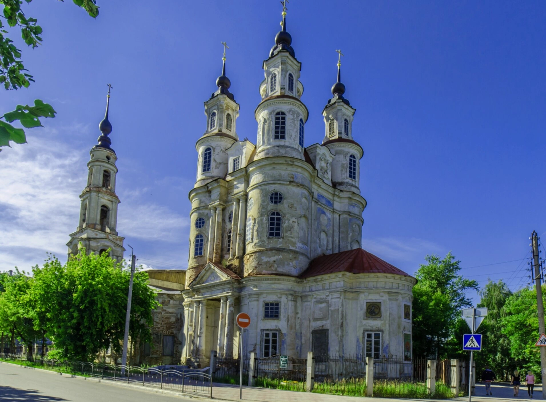 На представленной фотографии запечатлён храм во имя святых бессребреников и чудотворцев Космы и Дамиана Римских, расположенный в историческом районе Калуги — Ямской слободе. Эта каменная церковь, возведённая в 1794 году, является выдающимся памятником церковной архитектуры периода классицизма и объектом культурного наследия.