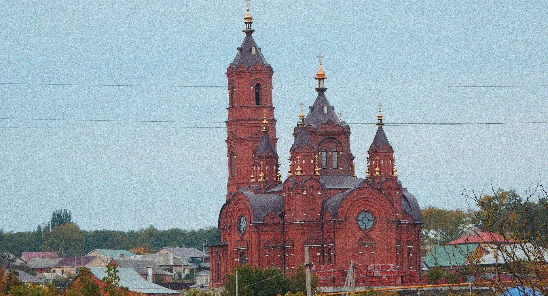 Кирпичный храм, выполненный в традиционном русском стиле, поражает своей монументальностью и строгой красотой. Его композицию венчают несколько глав, увенчанных золочёными крестами, сияющими под куполом неба. Над основным объёмом церкви горделиво возносится многоярусная колокольня, с которой разносится благодатный благовест по окрестным полям и сёлам. Фасады здания украшены арочными оконными проёмами и изящным кирпичным декором, что придаёт облику храма особую торжественность и лёгкость.