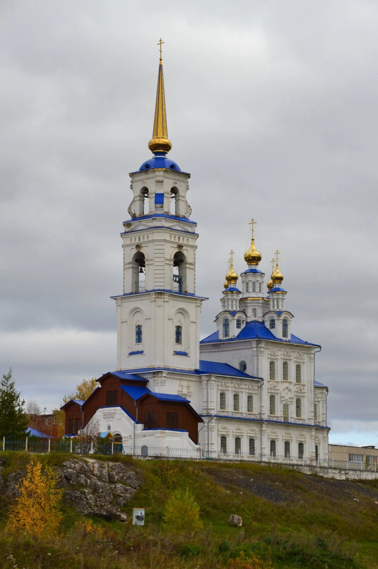 Белоснежный храм с синими куполами, увенчанными златоглавыми маковками и крестами, возвышается на холме, что подчёркивает его сакральную значимость и делает духовной доминантой в городском ландшафте. Высокая колокольня со шпилем, устремлённая в небо, символизирует молитвенное горение и связь земного с горним. Архитектура здания отражает уникальные традиции храмового зодчества Северного Урала.