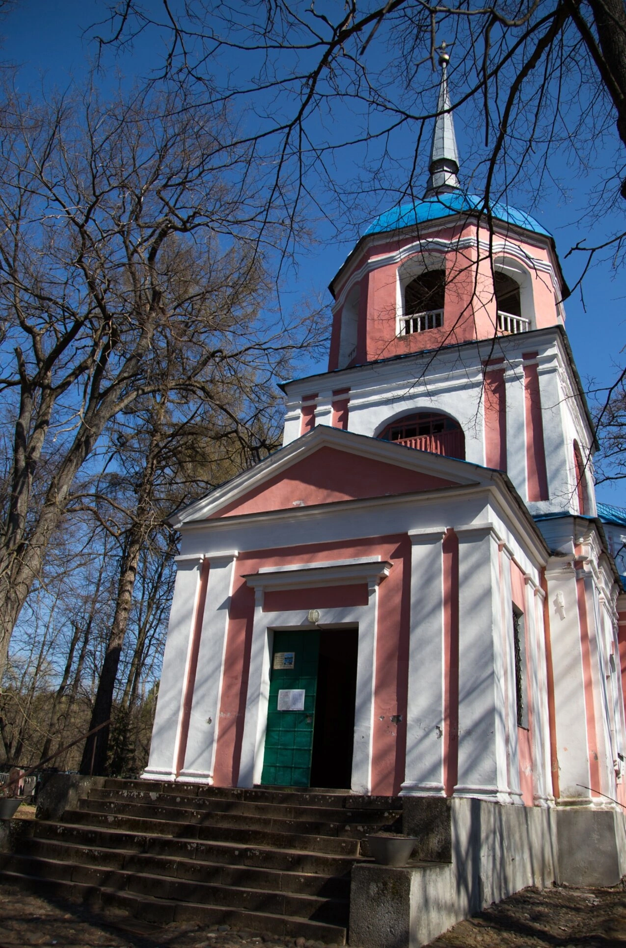 На представленной фотографии запечатлена жемчужина тверской земли — храм Воскресения Христова, что расположен на древнем погосте Прутня близ города Торжка. Святыня, утопающая в ветвях деревьев, предстаёт в своём архитектурном благолепии, демонстрируя нам двухъярусный объём и стройную колокольню, которая венчается синим куполом и устремлённым в небо золочёным шпилем. Нежные розовые стены, украшенные белоснежными деталями и оконными наличниками, создают образ светлой радости и духовной чистоты.