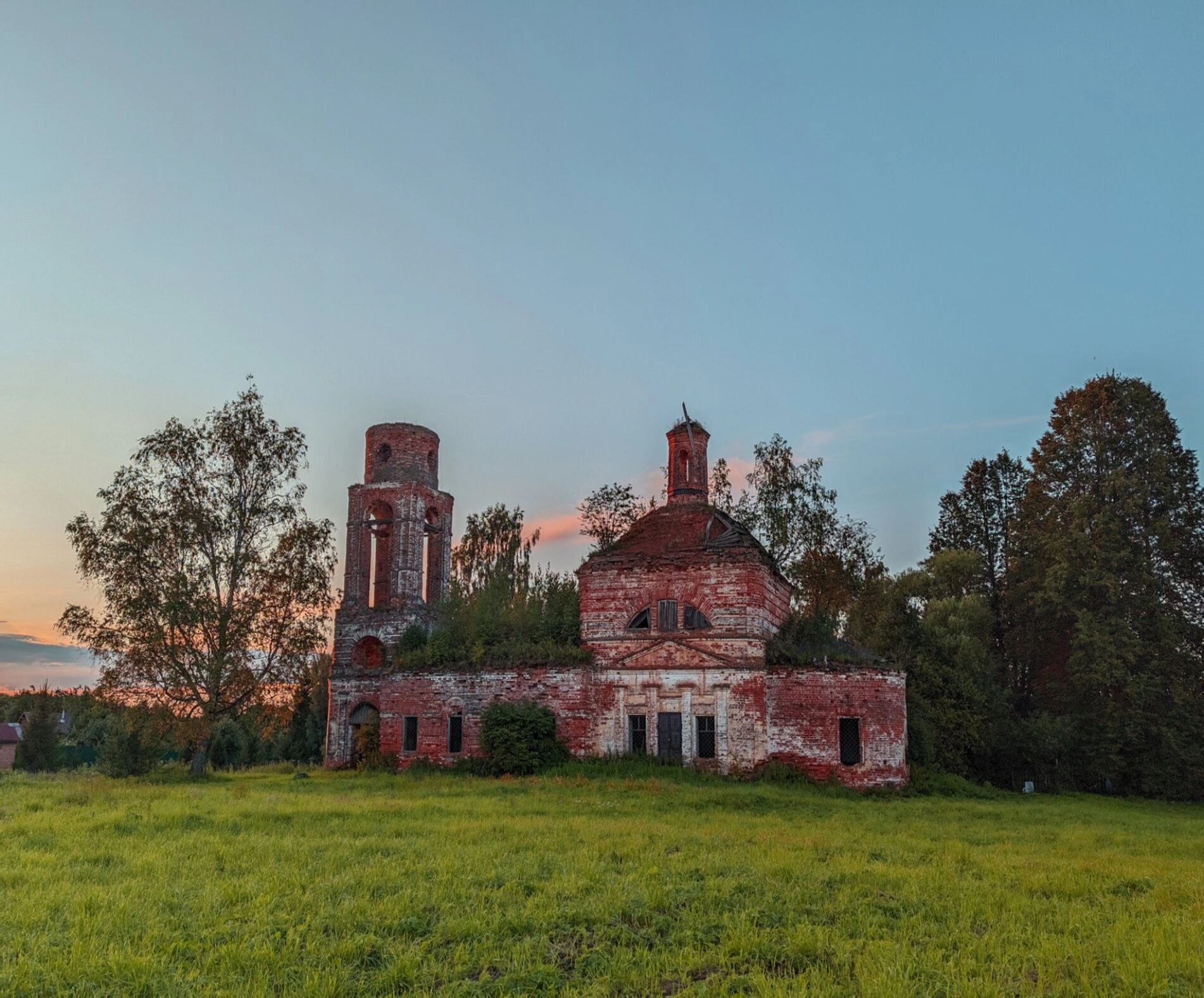 На представленной фотографии запечатлён вид на заброшенный православный храм Воскресения Христова, расположенный в селе Афанасьево Ивановской области. Этот памятник культурного наследия, ныне пребывающий в запустении, являет собой скорбный и в то же время величественный образец русского церковного зодчества.