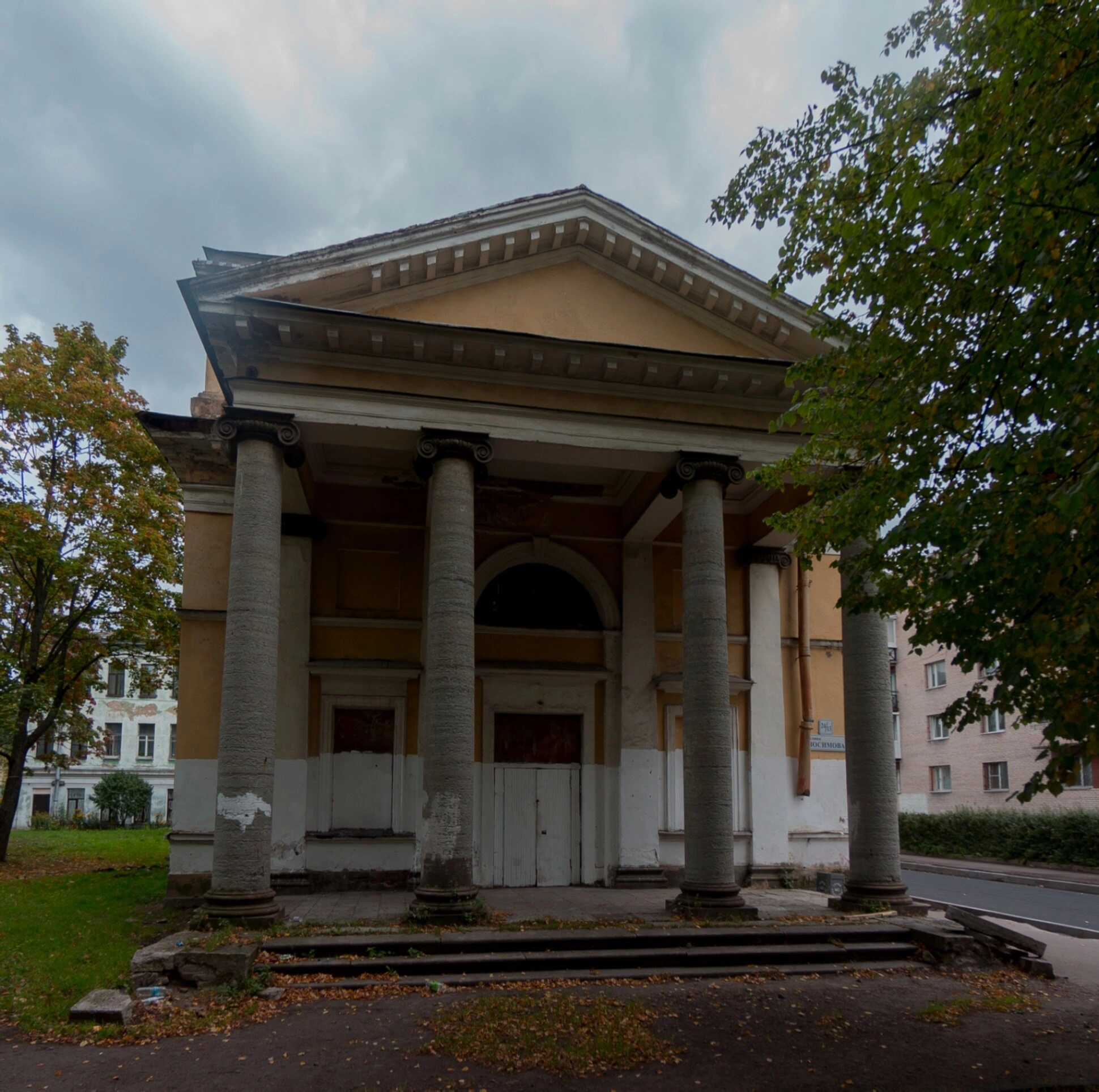 На представленной фотографии запечатлён величественный облик Крестовоздвиженского собора (Часовни), расположенного в городе-крепости Кронштадте по адресу улица Зосимова, 24. Этот православный храм, освящённый в честь праздника Воздвижения Честного и Животворящего Креста Господня, является значимым духовным центром и памятником церковной архитектуры.