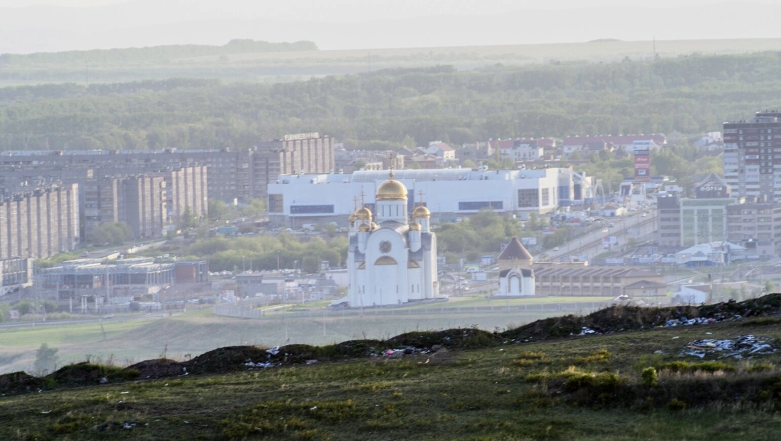 На переднем плане открывается вид на холмистую местность, а на среднем плане виднеется развитая городская инфраструктура с жилыми кварталами. На заднем плане, утопая в лёгкой дымке, простираются лесистые холмы, обрамляющие панораму города. Храм был возведён по благословению Святейшего Патриарха и освящён в 2016 году, став одним из крупнейших храмовых комплексов на Южном Урале. Сегодня он является не только местом молитвы, но и архитектурной доминантой, духовным символом Магнитогорска.