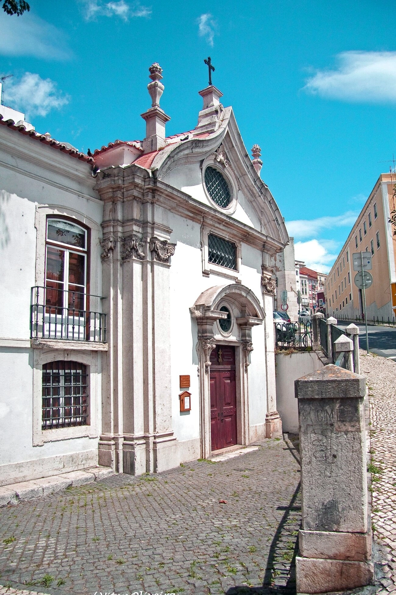 Внешний облик храма, представленный на снимке, является характерным образцом португальской церковной архитектуры, который был с любовью и благоговением приспособлен для православного богослужения. Фасад здания отличается сдержанной и строгой красотой. Важным элементом, указывающим на его нынешнее предназначение, являются православные кресты, венчающие сооружение, что символизирует торжество истинной веры.