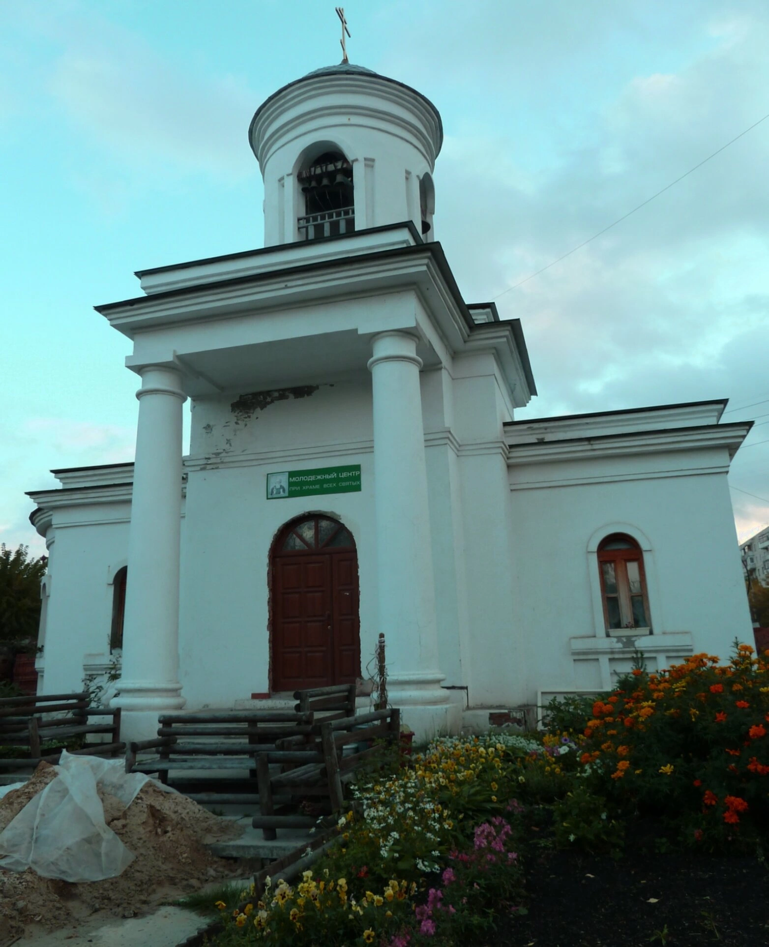 Фасад здания украшен характерными для православного зодчества элементами, а наличие строительных лесов на момент съёмки свидетельствует о непрестанной заботе верующих о сохранении этого святого места. У входа обращает на себя внимание вывеска «Молодёжный центр», что говорит о современном многофункциональном использовании храма для духовно-просветительской работы с молодёжью.