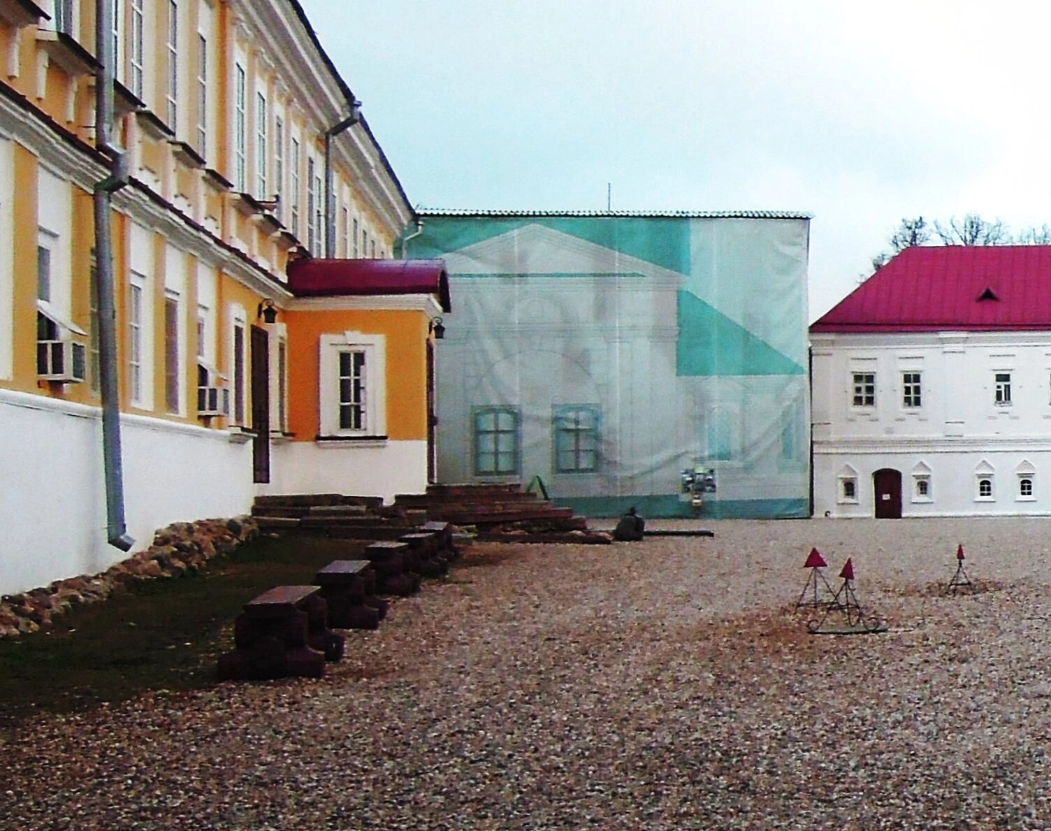 В настоящее время храм Всех Святых, как видно на фотографии, находится на реставрации. Защитный тент, частично закрывающий здание, символизирует ongoing процесс восстановления этой древней святыни, возвращения ей былого благолепия. Реставрационные работы направлены на сохранение уникального памятника церковной архитектуры для будущих поколений православных верующих.