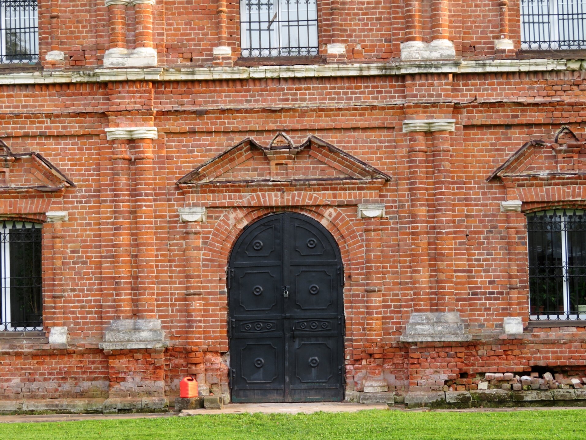 Главный вход в храм выделен массивной арочной дверью чёрного цвета, что символизирует торжественность и духовную значимость входа в дом Божий. Над входом traditionally располагается икона, а завершает композицию стройный барабан с луковичной главкой, увенчанной православным крестом.