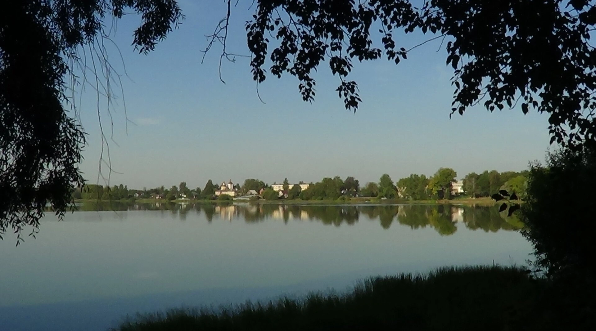 На фотографии запечатлён живописный вид на храм Живоначальной Троицы в городе Бологое, расположенный на берегу озера. Это старейший православный храм города, духовная святыня, возведённая в 1808 году на месте более древней деревянной церкви во имя Иоанна Предтечи 1755 года. Свято-Троицкая церковь является приходским храмом Бологовского благочиния Тверской епархии и обладает статусом объекта культурного наследия.