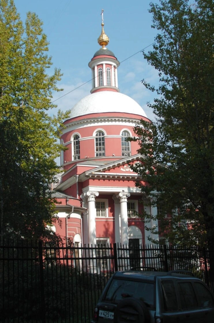Первое упоминание о деревянном храме на этом месте относится к XVII веку. Каменный же храм был возведён в начале XIX века по проекту известного архитектора А. Г. Григорьева в стиле ампир. Архитектурный облик храма, который мы видим на снимке, отличается строгой торжественностью и гармонией форм. Основной объём венчает мощный световой барабан с главным куполом, а стройная трёхъярусная колокольня является важной высотной доминантой округи.