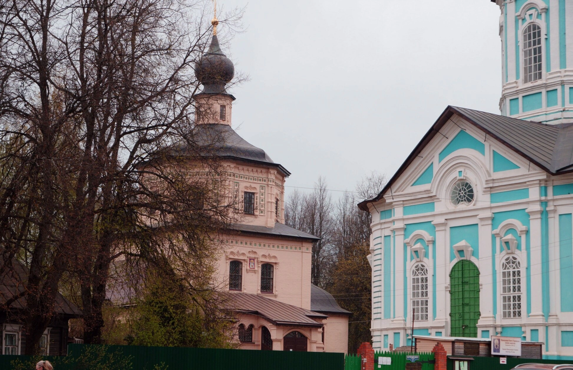Справа от главного храма располагается другой монастырский корпус, возможно, братский или хозяйственный, что создаёт целостный ансамбль православной святыни. Примечательно, что монастырь носит имя святителя Тихона, Патриарха Всероссийского, который в 1920-е годы находился в заключении в этом городе и чьё наследие особо почитается в этих местах.