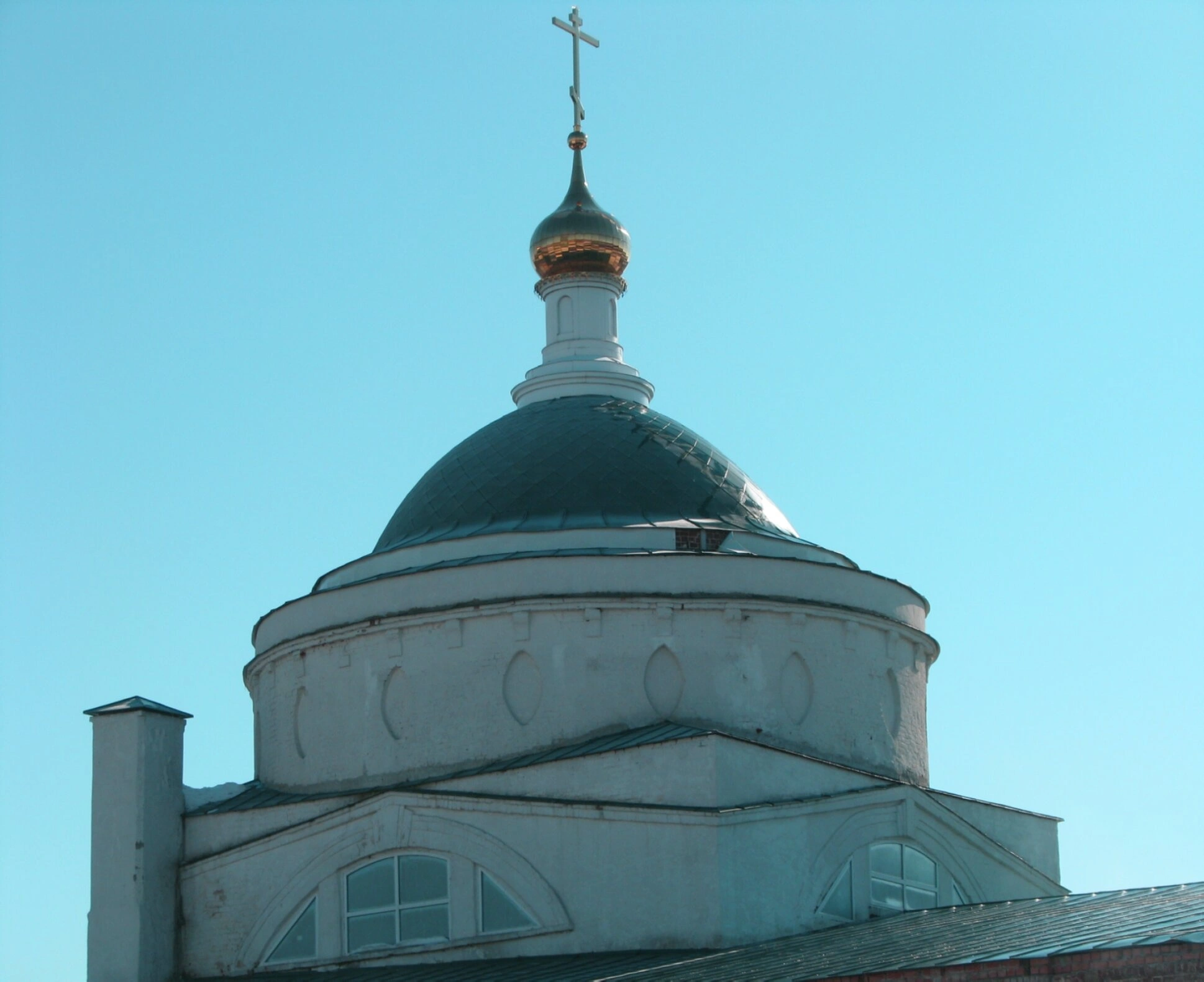 Барабан прорезан высокими арочными окнами, обеспечивающими обилие света в внутреннем пространстве храма во время богослужений. Фасадная часть, выполненная из красного кирпича, украшена лаконичным белым декором, что характерно для традиционного русского церковного зодчества. Четкость линий и монументальность форм свидетельствуют о классических архитектурных канонах, по которым строился этот благодатный дом молитвы.