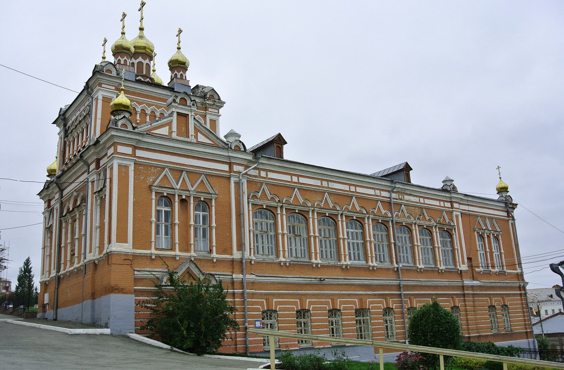 Храм, освящённый в честь Входа Господня в Иерусалим, представляет собой выдающийся образец русского церковного зодчества. Массивное здание выстроено из красного кирпича и украшено изящными белокаменными декоративными элементами, создающими торжественный и нарядный облик. Фасады обильно прорезаны арочными и прямоугольными окнами, что наполняет внутреннее пространство обители божественным светом.