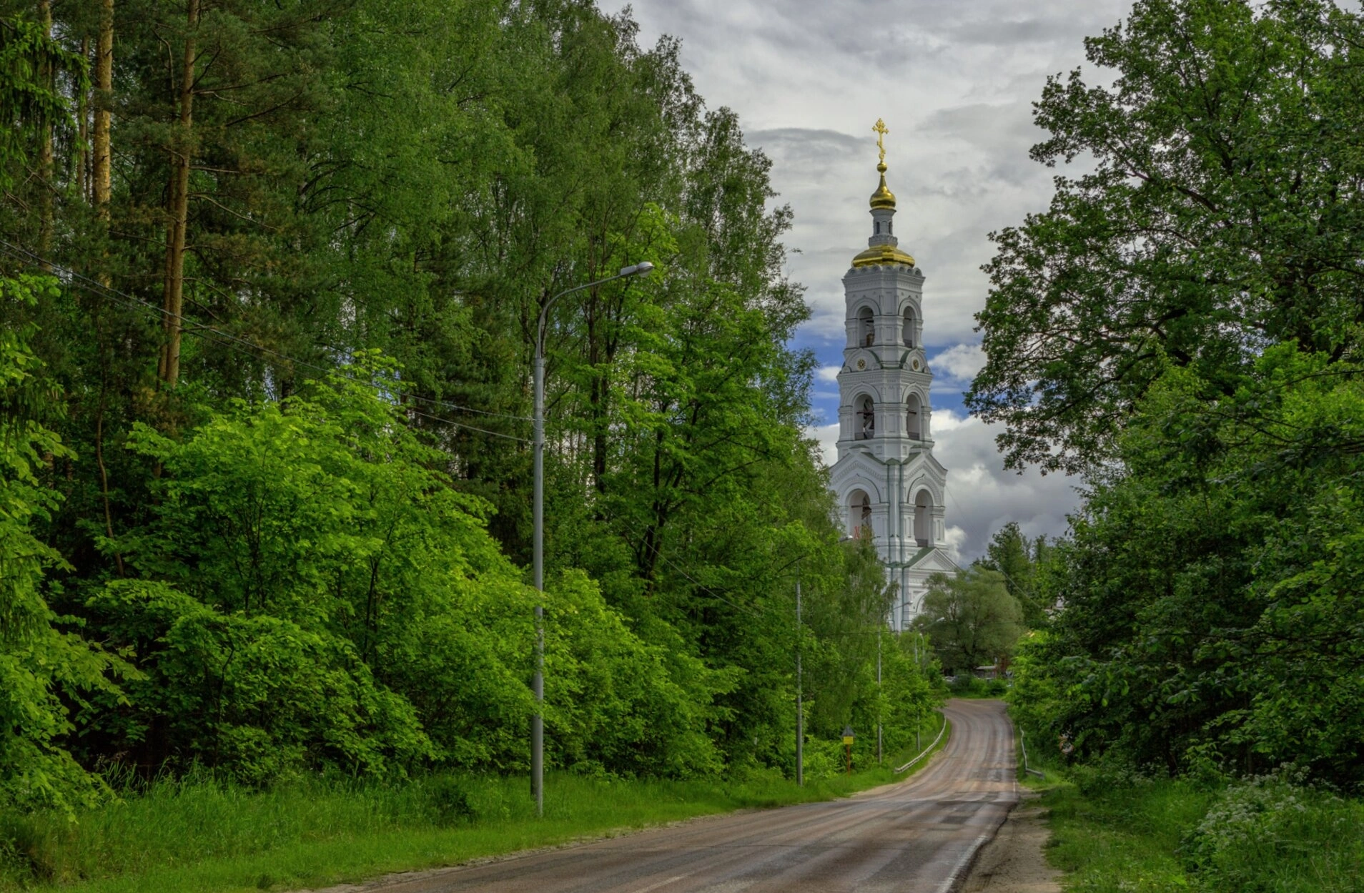 На фотографии отсутствуют люди, что позволяет в полной мере сосредоточить внимание на архитектурных достоинствах этого святого места. Пасмурная погода создаёт особую атмосферу умиротворения и благоговения, характерную для православных монастырей.