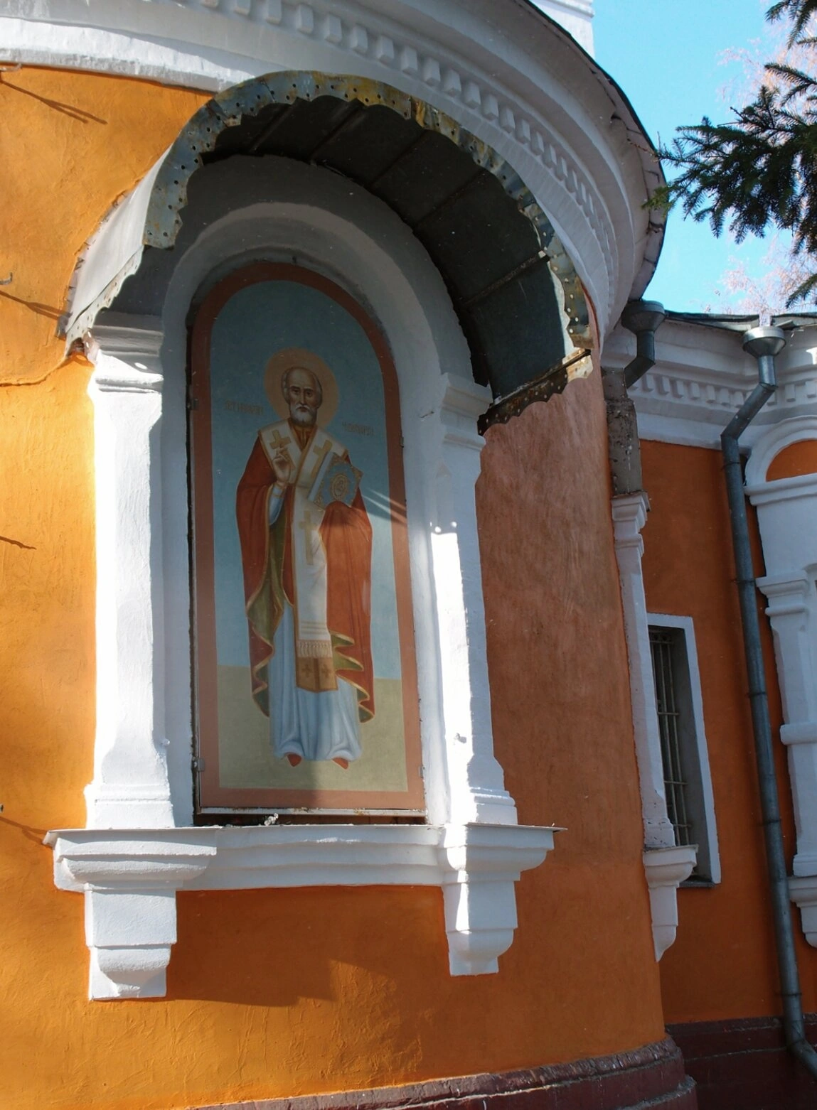 Сама ниша, обрамлённая кирпичной кладкой, является неотъемлемой частью архитектурного облика храма, выполненного в стиле эклектики с элементами классицизма. Она не только украшает стену, но и несёт глубокое символическое значение, указывая на небесное заступничество святителя Николая над этой обителью и всеми прихожанами.