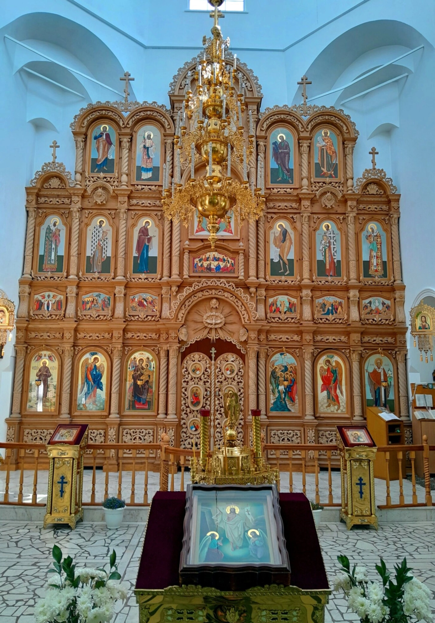 Иконостас Богоявленской церкви представляет собой не только молитвенную преграду, отделяющую алтарь от основного пространства храма, но и образ всей полноты Церкви Христовой, где каждое изображение имеет глубокое догматическое и литургическое значение.