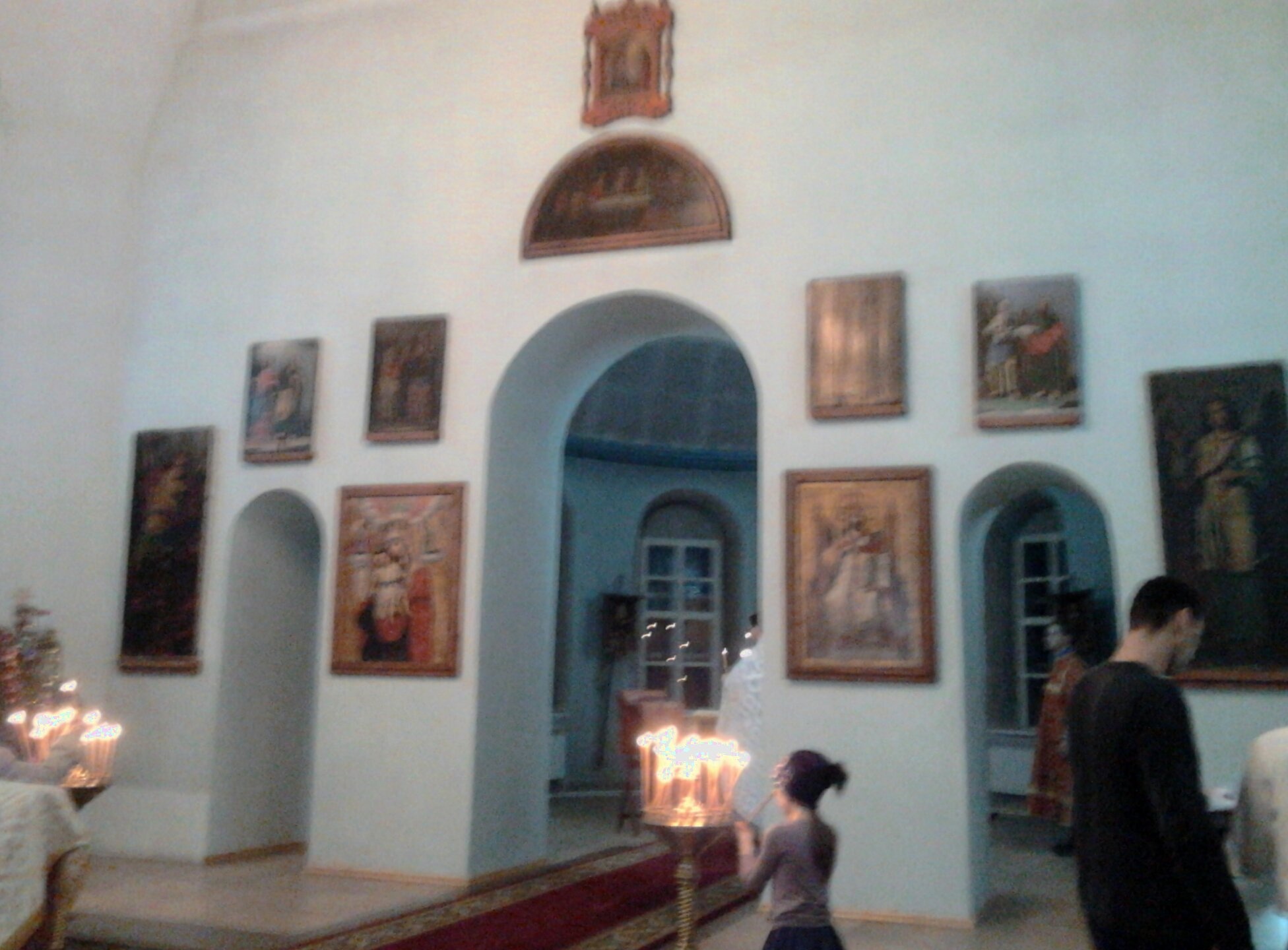 Центральным элементом композиции является величественный многоярусный иконостас — святая святых любого православного храма. Его тёмное дерево и обилие священных изображений создают ощущение благоговейной торжественности. Иконы в резных киотах и золочёных рамах, размещённые на стенах и арочных проёмах, свидетельствуют о глубокой истории и молитвенном подвиге многих поколений, собиравшихся в этих стенах.