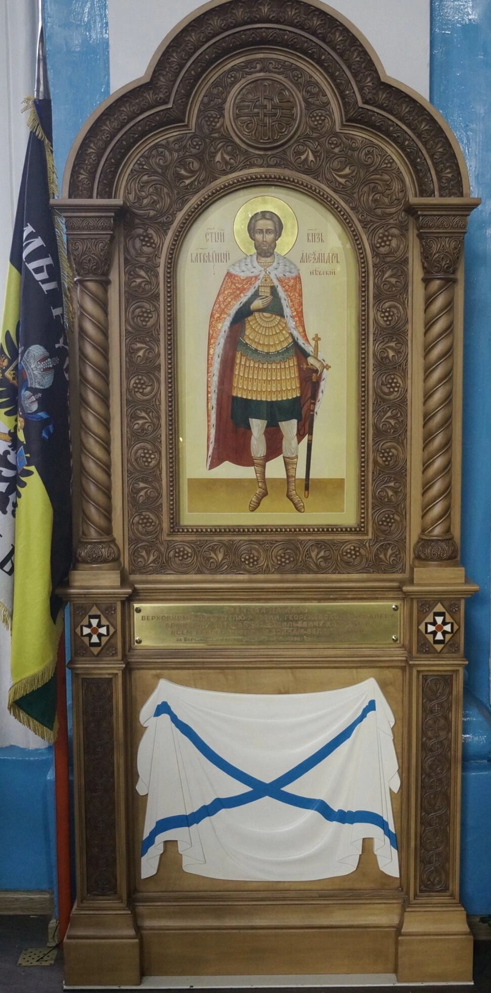 - Иконостас с иконой святого Александра Невского в храме «Кулич и Пасха»