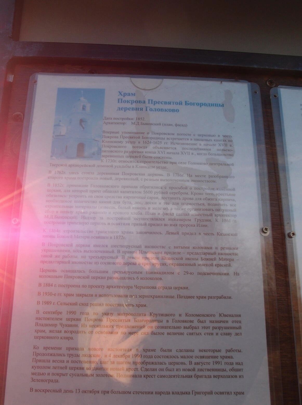 - Информационная табличка Храма Покрова Пресвятой Богородицы в деревне Головково