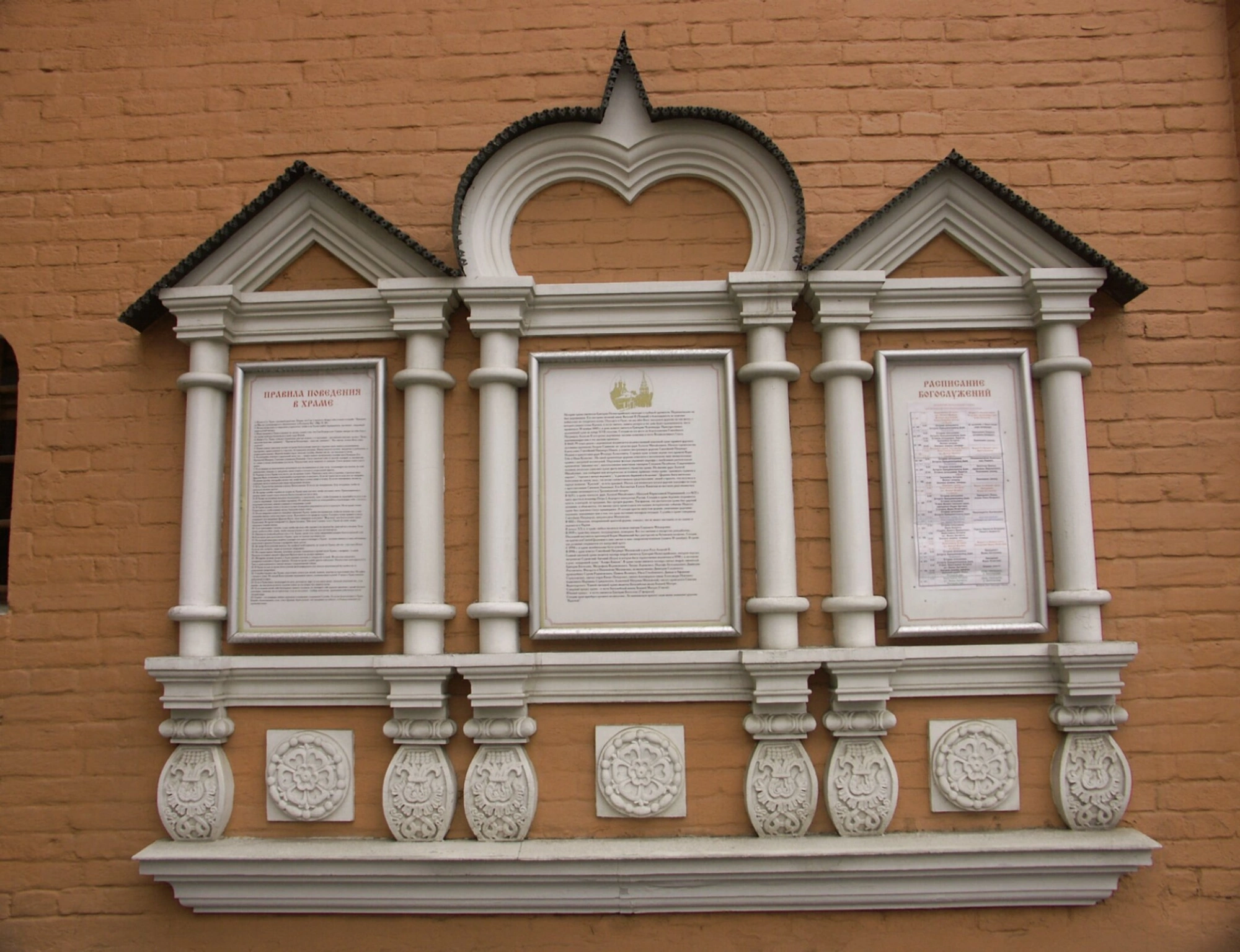 Установка такого информационного стенда у входа в исторический храм, связанный с именами царя Алексея Михайловича и императора Петра I, символизирует непрерывность церковной традиции и заботу о духовном просвещении прихожан. Он гармонично вписывается в пространство одного из красивейших московских храмов, продолжая служить своей главной цели – направлять человека к благоговейному общению с Богом в священном пространстве церкви.