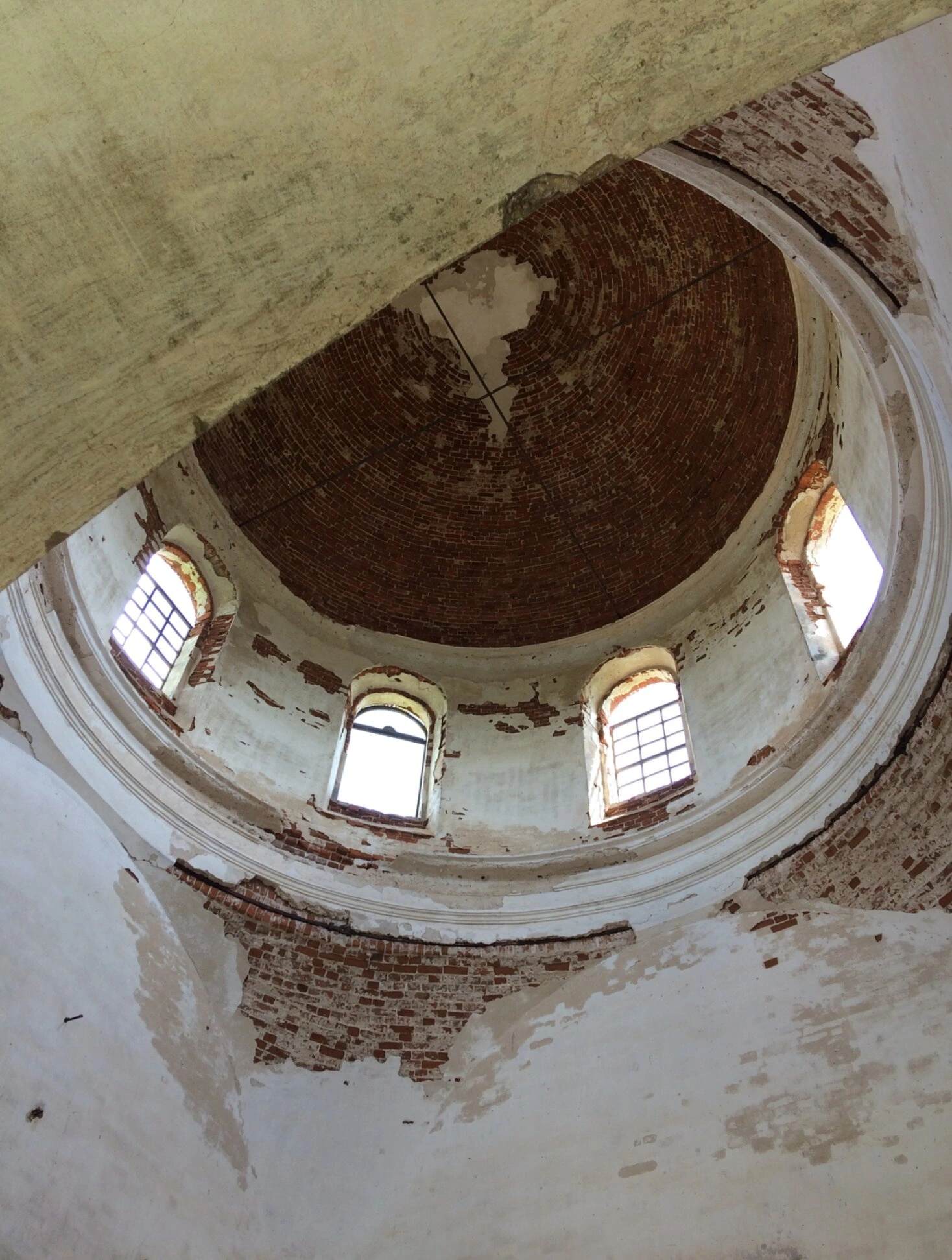 Взгляд зрителя неизбежно приковывает к себе купол храма, который даже в нынешнем состоянии сохраняет следы былого благолепия. Свет, проникающий через оконные проёмы барабана, создаёт особую атмосферу, напоминающую о божественном свете, символически нисходящем на молящихся. Архитектурные детали свода и переходы от стен к куполу демонстрируют характерные для православного зодчества приёмы.