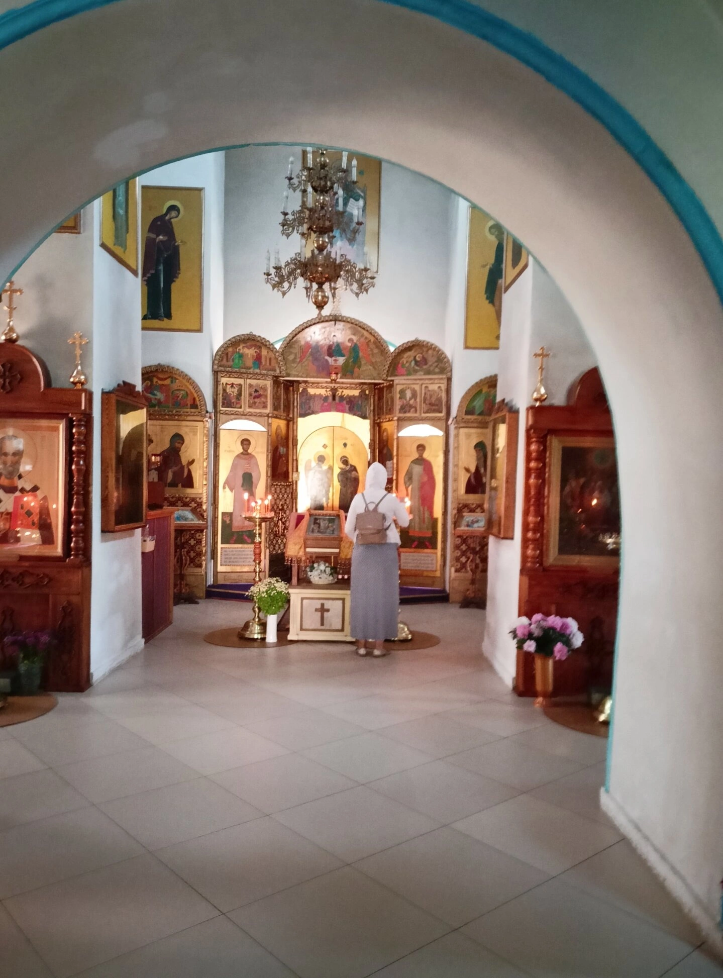 Стены и своды храма украшены настенной росписью, создающей особую молитвенную атмосферу. Фрески изображают евангельские сюжеты и лики святых, наставляя верующих на путь спасения. Источники естественного света, проникающие через оконные проёмы, мягко освещают пространство, подчёркивая благоговейную торжественность храмового интерьера.