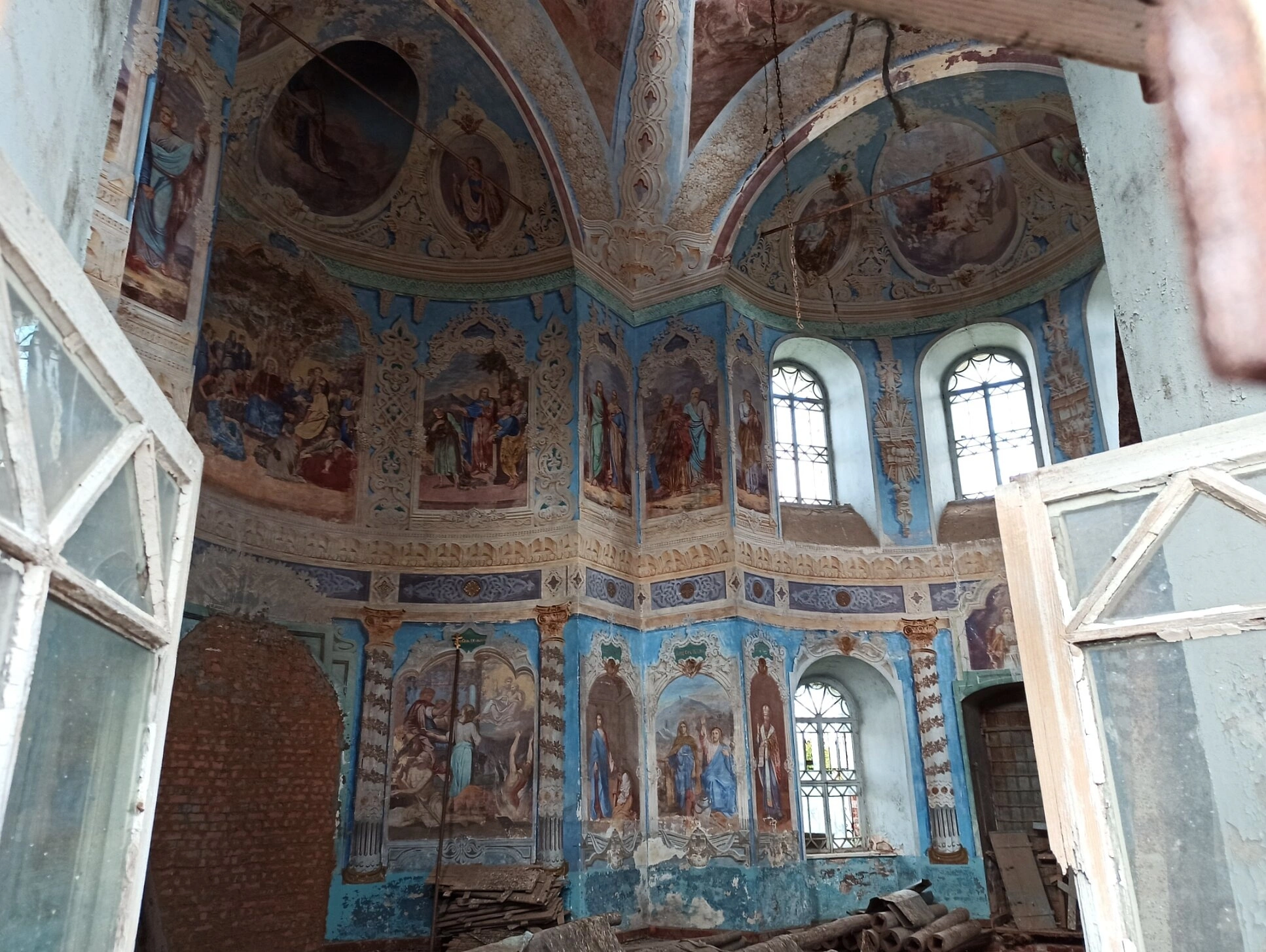 Грустное зрелище являют собой следы разрушения: обломки штукатурки и кирпичной кладки на полу, осыпающаяся побелка. Местами обнажилась материковая основа здания, что подчёркивает его ветхость и долгие годы забвения. Однако даже в таком состоянии храм сохраняет особую, молитвенную атмосферу, напоминая о былом величии и призывая к восстановлению поруганной святыни.