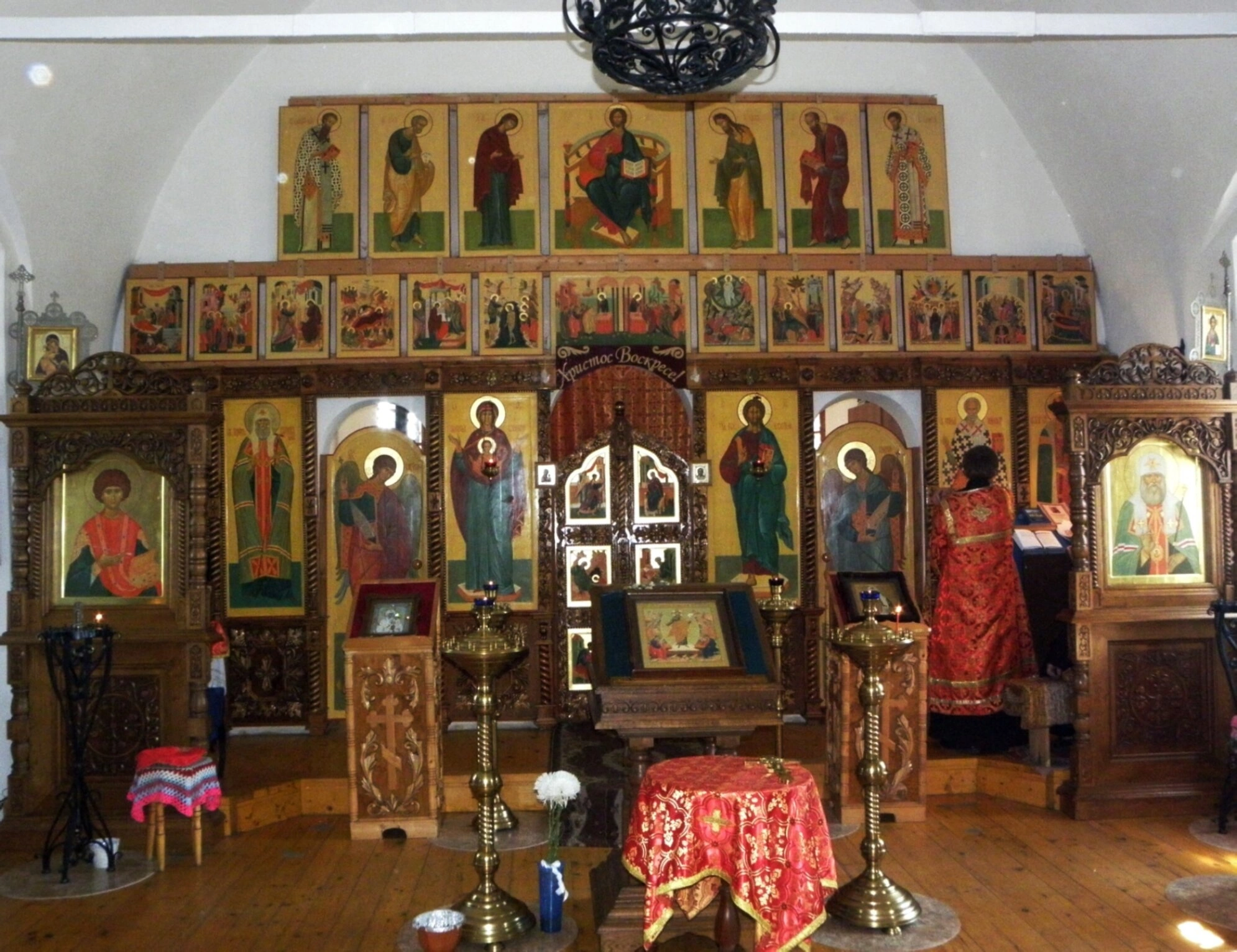 Внутреннее пространство церкви, несмотря на её относительно небольшие размеры и скромный однопрестольный характер, отличается особой благоговейной атмосферой. Исторически храм отапливался дровами, что позволяло совершать богослужения в зимнее время. Взор приковывает святой алтарь и иконостас, место сосредоточения главных святынь. Среди них особо почитается образ святителя Тихона, Патриарха Московского и всея Руси, с частицей его честных мощей. Эта икона была подарена храму Святейшим Патриархом Алексием II после возрождения церковной жизни.