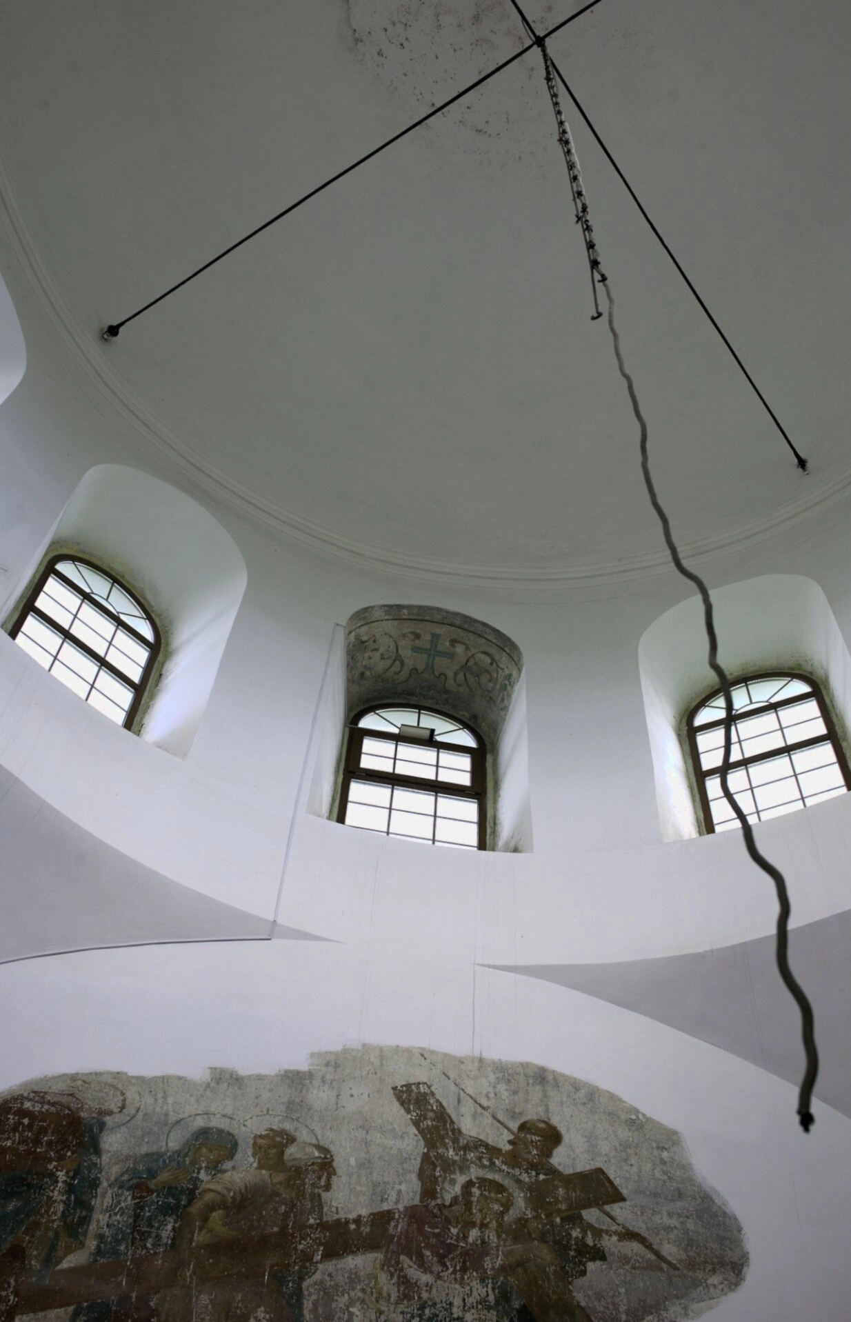 В центре композиции возвышается световой купол, символизирующий небесный свод и присутствие Божие. Его белизна и плавные изгибы создают ощущение лёгкости и величия. От купола свисает цепь для центрального паникадила — большого храмового светильника, чей свет во время богослужения олицетворяет собой свет Христов, просвещающий всех верующих.