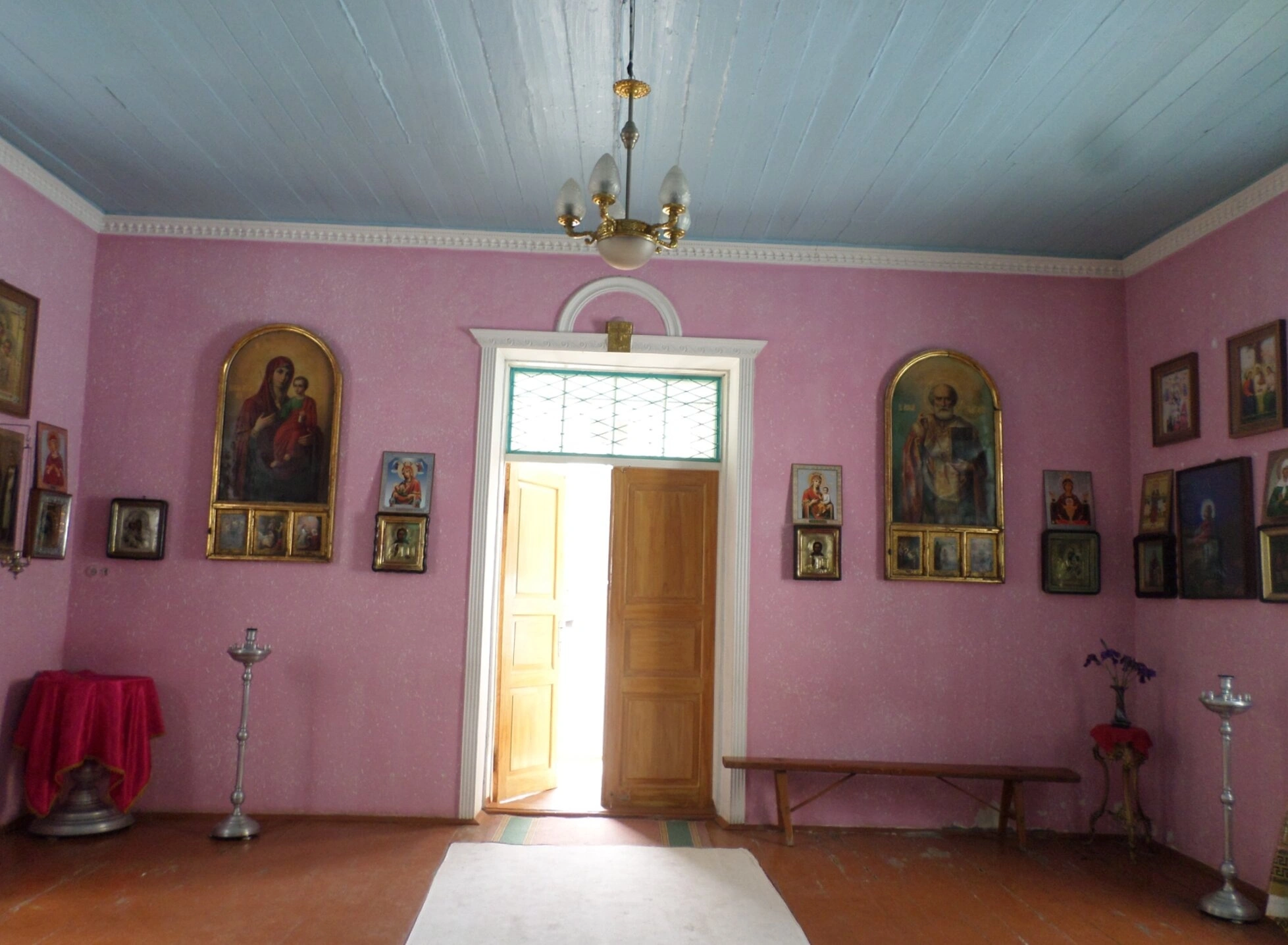 Взору предстаёт уютный молитвенный зал, стены которого окрашены в тёплый розовый цвет и обильно украшены священными изображениями. Центральное место в иконостасе и на стенах занимают большие почитаемые иконы Пресвятой Богородицы с Младенцем и самого небесного покровителя храма — святого Архангела Михаила. Множество меньших икон в золочёных окладах, размещённых вокруг, создают атмосферу благоговения и молитвенного сосредоточения.