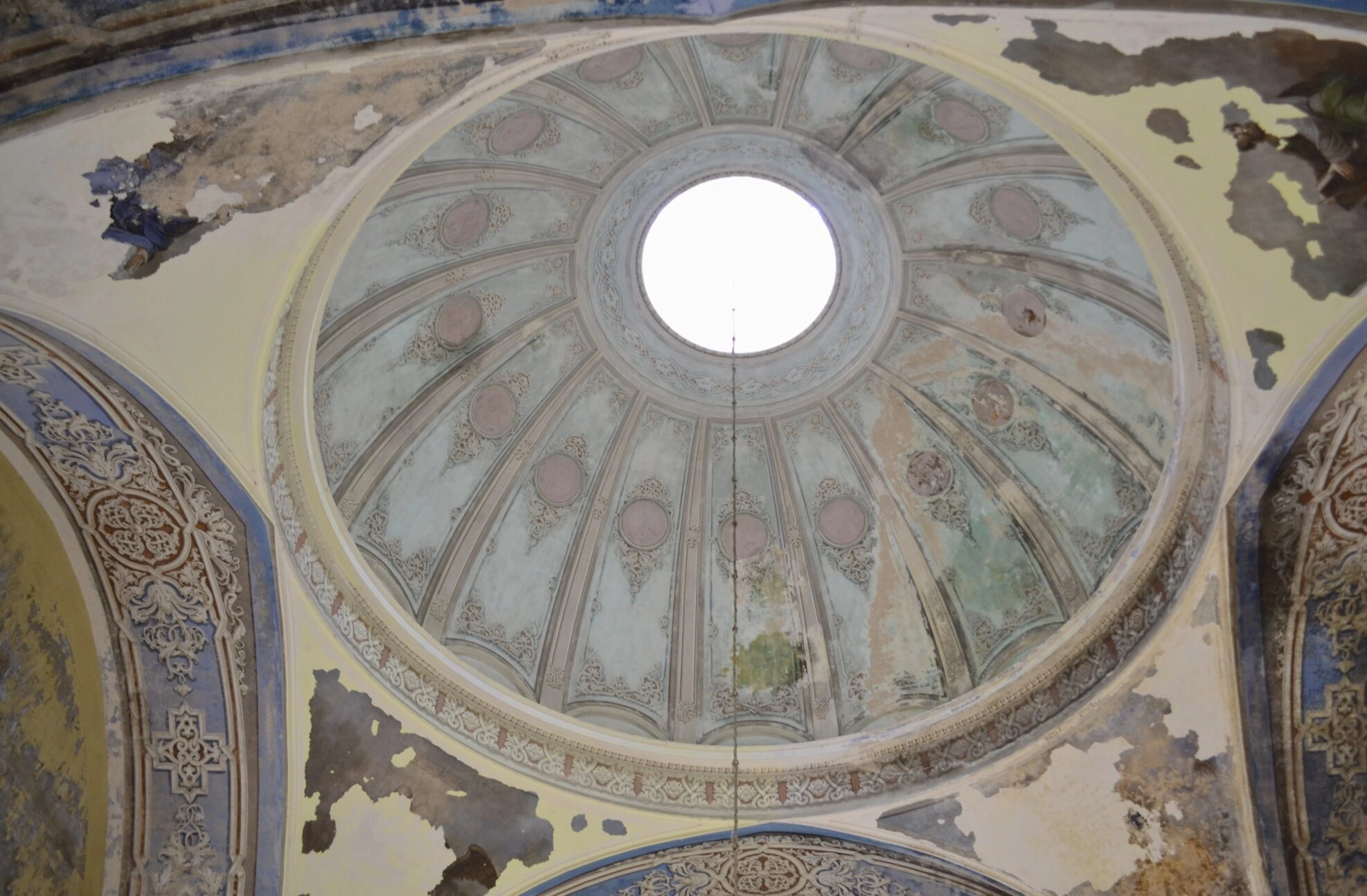 Купол и прилегающие паруса богато украшены лепным декором и фресковой росписью, характерной для православной храмовой традиции XIX столетия. Состояние живописи и штукатурного слоя заметно требует проведения профессиональных реставрационных работ для сохранения этого уникального духовного и культурного наследия.