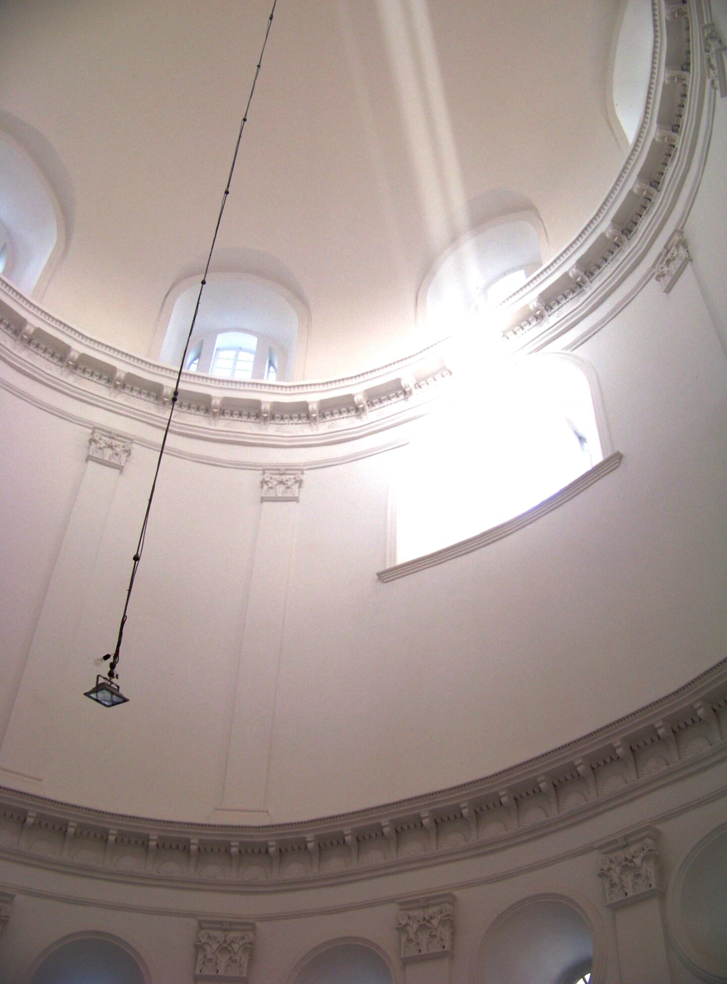 Взгляд устремляется ввысь, к небесной сфере светового барабана и главного купола храма. Освещение, проникающее сквозь арочные окна, расположенные по периметру барабана, создаёт божественную игру света и тени, наполняя пространство благодатным сиянием. Это символизирует свет веры, нисходящий на молящихся.