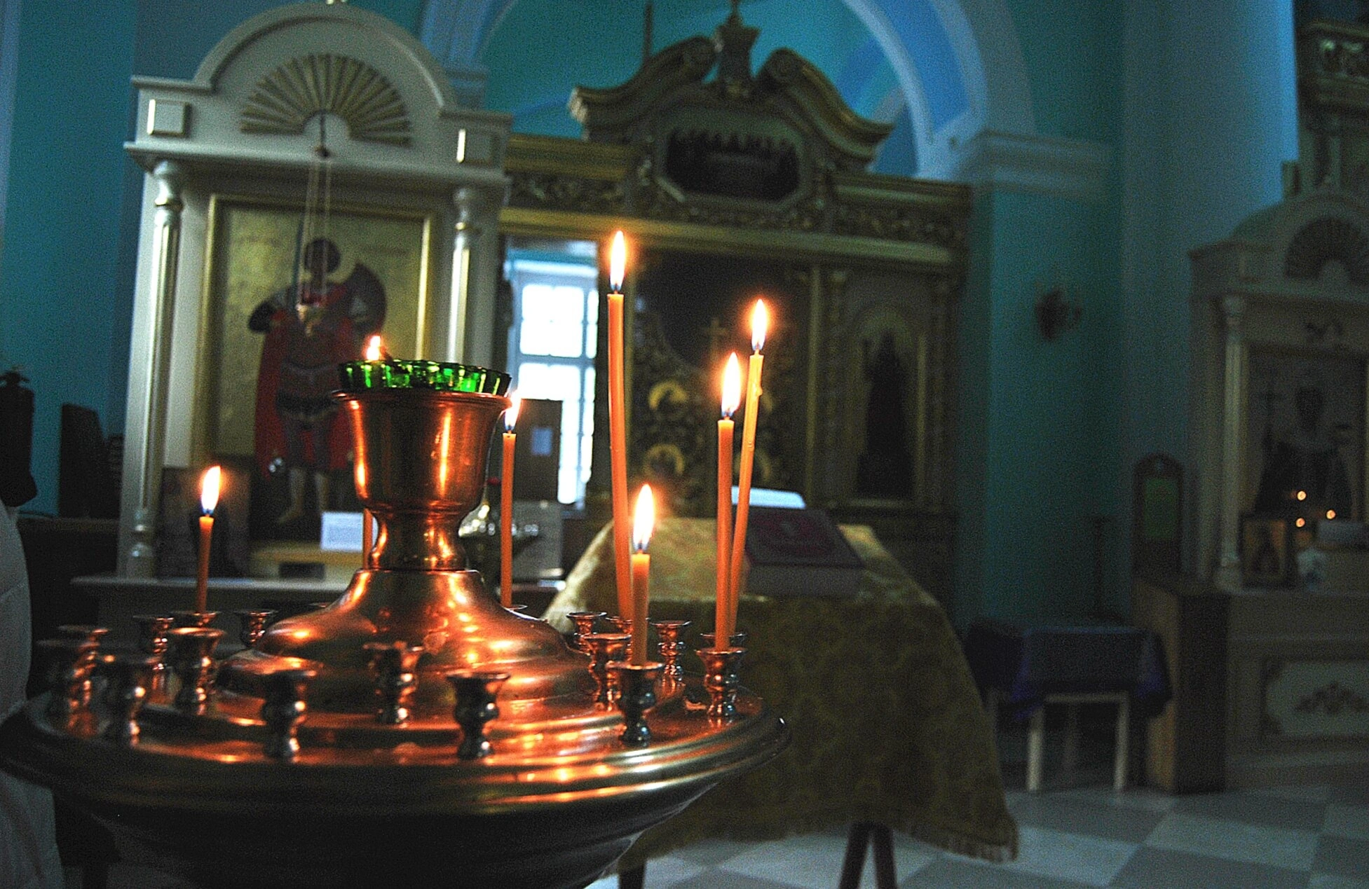 На фотографии запечатлён величественный интерьер кафедрального собора во имя святого благоверного великого князя Александра Невского в Петрозаводске. Центральное место в духовном пространстве храма занимает великолепный позолоченный иконостас, выполненный в лучших традициях русского церковного искусства. Многоярусная конструкция иконостаса обильно украшена резьбой и содержит множество святых образов, являясь главной святыней и духовным фокусом для молящихся.