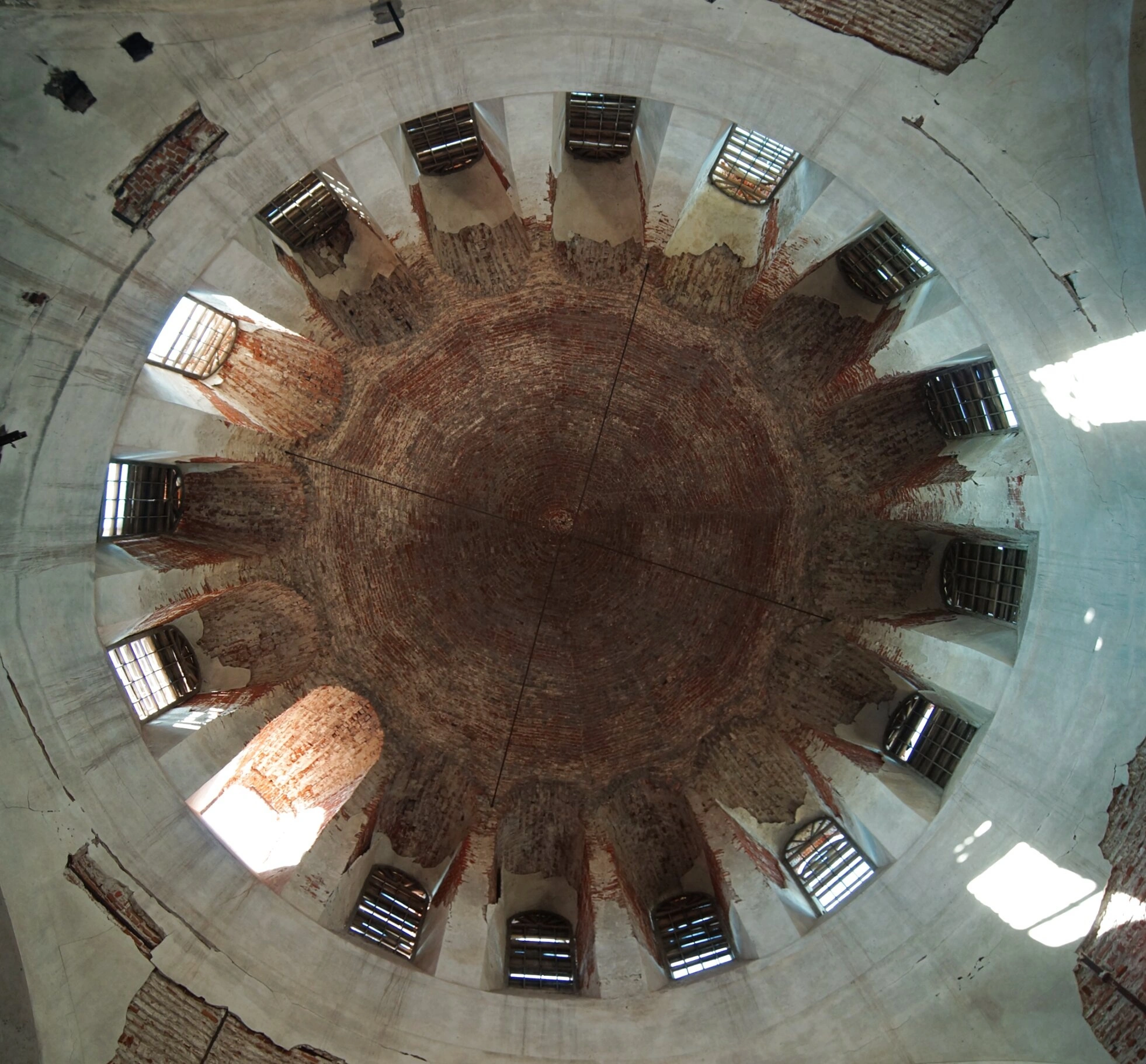 Купол, традиционно олицетворяющий в православной архитектуре небо и единство верующих вокруг Бога, покоится на массивном световом барабане, прорезанном высокими арочными окнами. Через эти оконные проёмы в храмовое пространство обильно изливается дневной свет, создающий в солнечные дни эффектную игру божественного света и подчёркивающий торжественность атмосферы. Внутренняя поверхность свода, выполненная из кирпича и оштукатуренная, сохранила следы первоначальной храмовой росписи, вероятно, изображавшей Пантократора (Вседержителя) в медальоне в центре и небесные силы в простенках барабана.